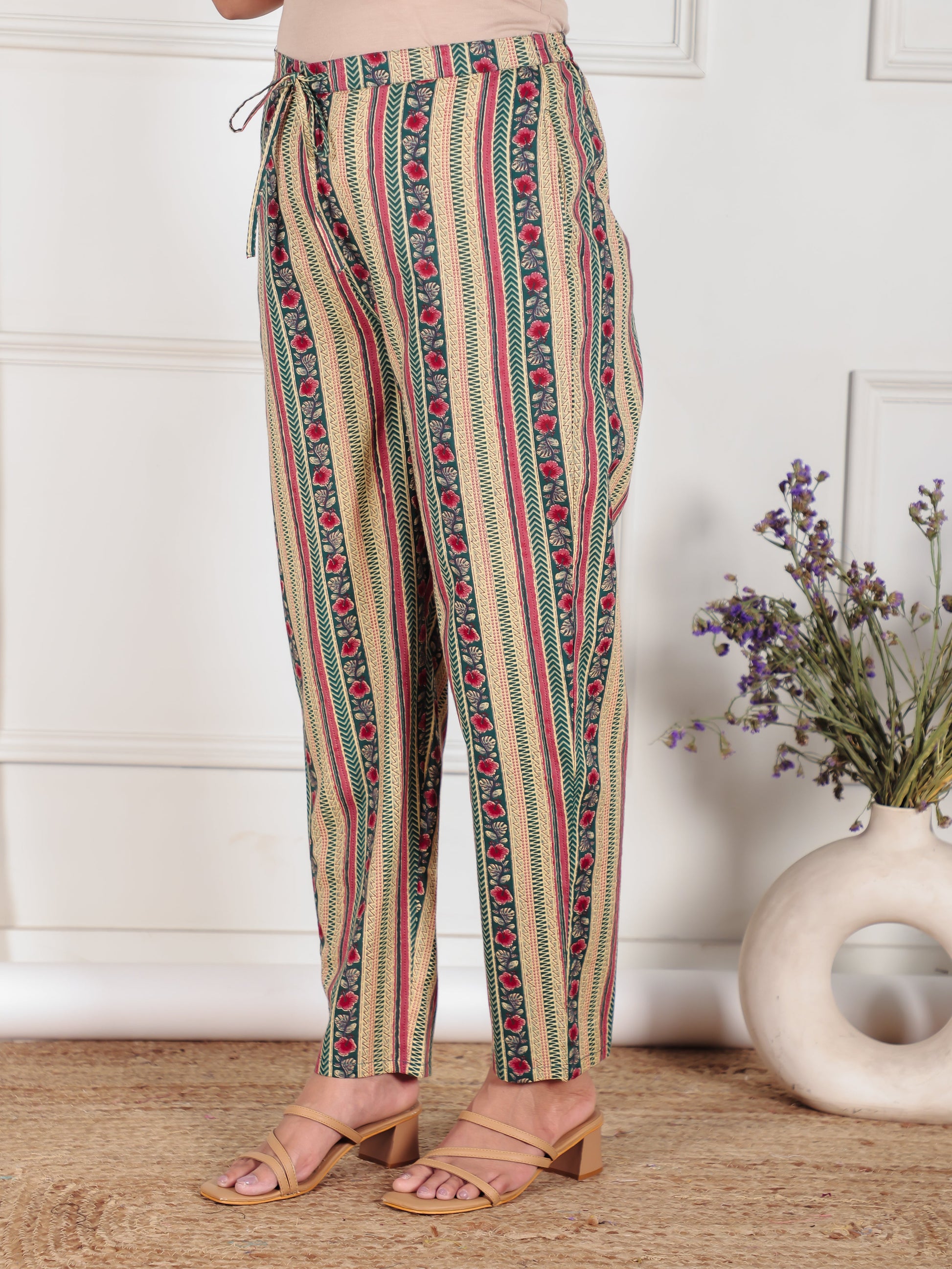 Designed for both comfort and versatility, these Soft Cotton Green bottoms feature a stylish Striped design and pockets for added functionality. Perfect for office looks or weekend errands, they offer a flattering fit that works with a variety of tops. Pair with minimal accessories for a polished finish and enjoy effortless care.