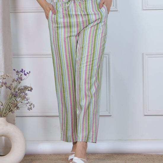 Designed for both comfort and versatility, these Soft Cotton Green bottoms feature a stylish Striped design and pockets for added functionality. Perfect for office looks or weekend errands, they offer a flattering fit that works with a variety of tops. Pair with minimal accessories for a polished finish and enjoy effortless care.