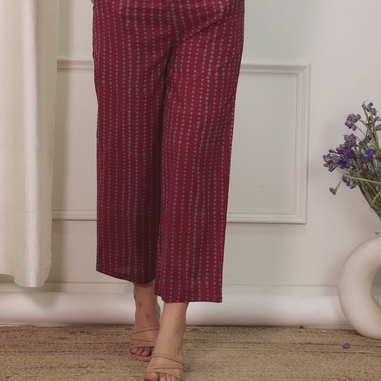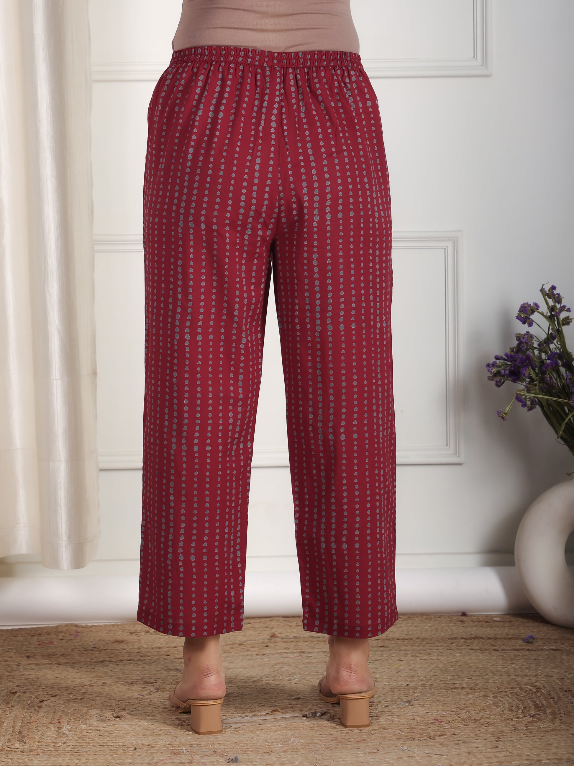 Designed for both comfort and versatility, these Soft Cotton Maroon bottoms feature a stylish Abstract design and pockets for added functionality. Perfect for office looks or weekend errands, they offer a flattering fit that works with a variety of tops. Pair with minimal accessories for a polished finish and enjoy effortless care.