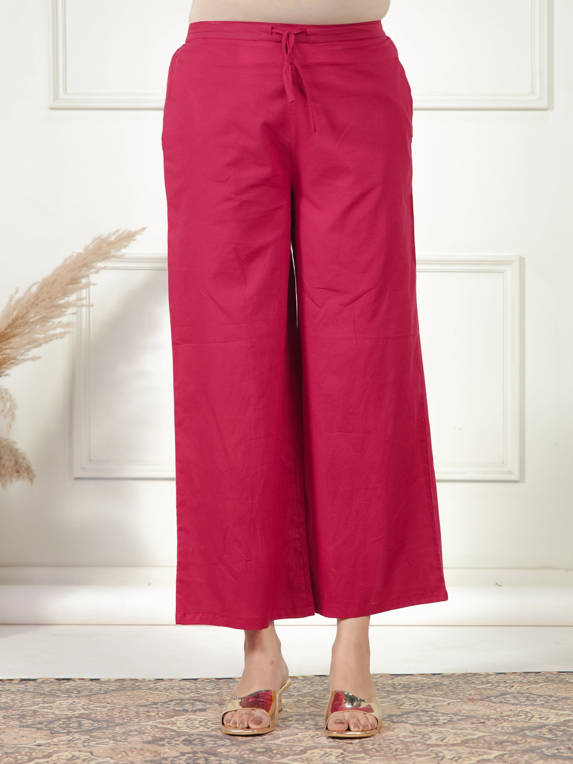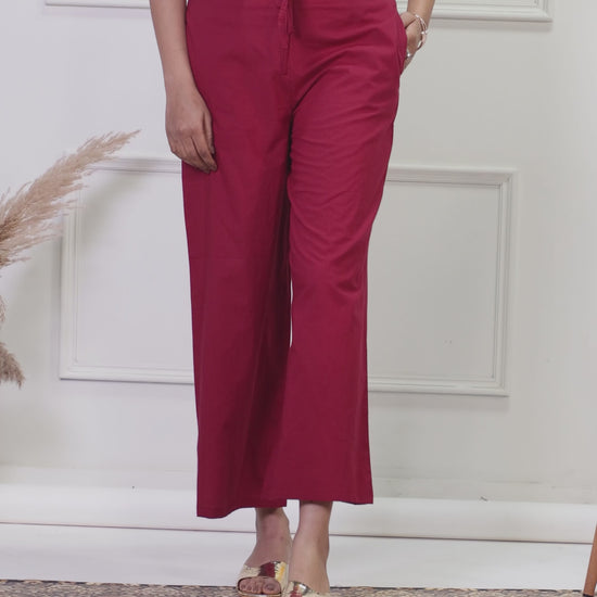 These Maroon trouser crafted from breathable Soft Cotton combine comfort and style. The Solid pattern adds a modern twist, while pockets make them practical for daily wear. Ideal for casual outings or workdays, they pair effortlessly with kurtas, tops, or tunics. Keep them looking fresh with minimal care and enjoy their all-day ease.