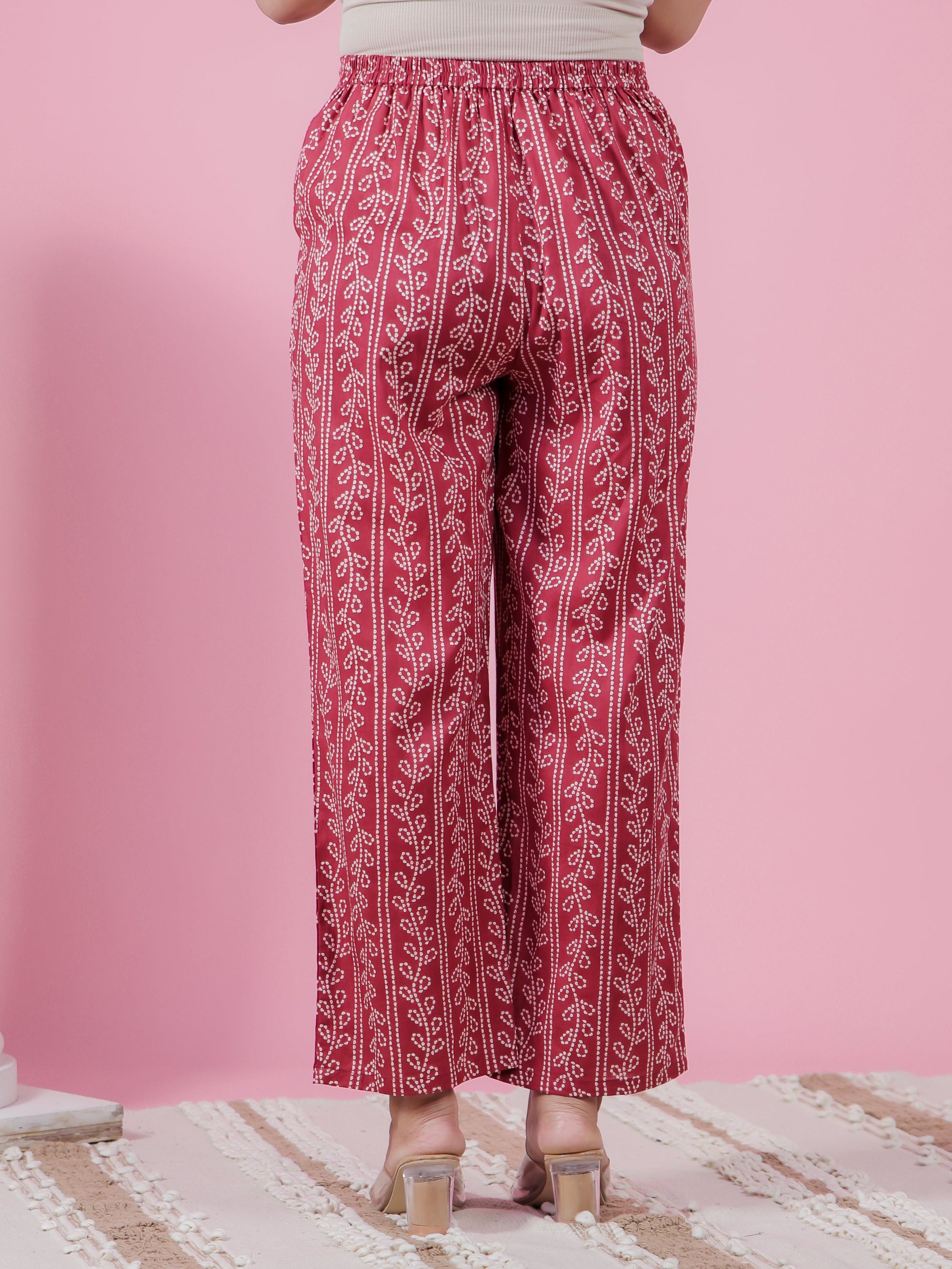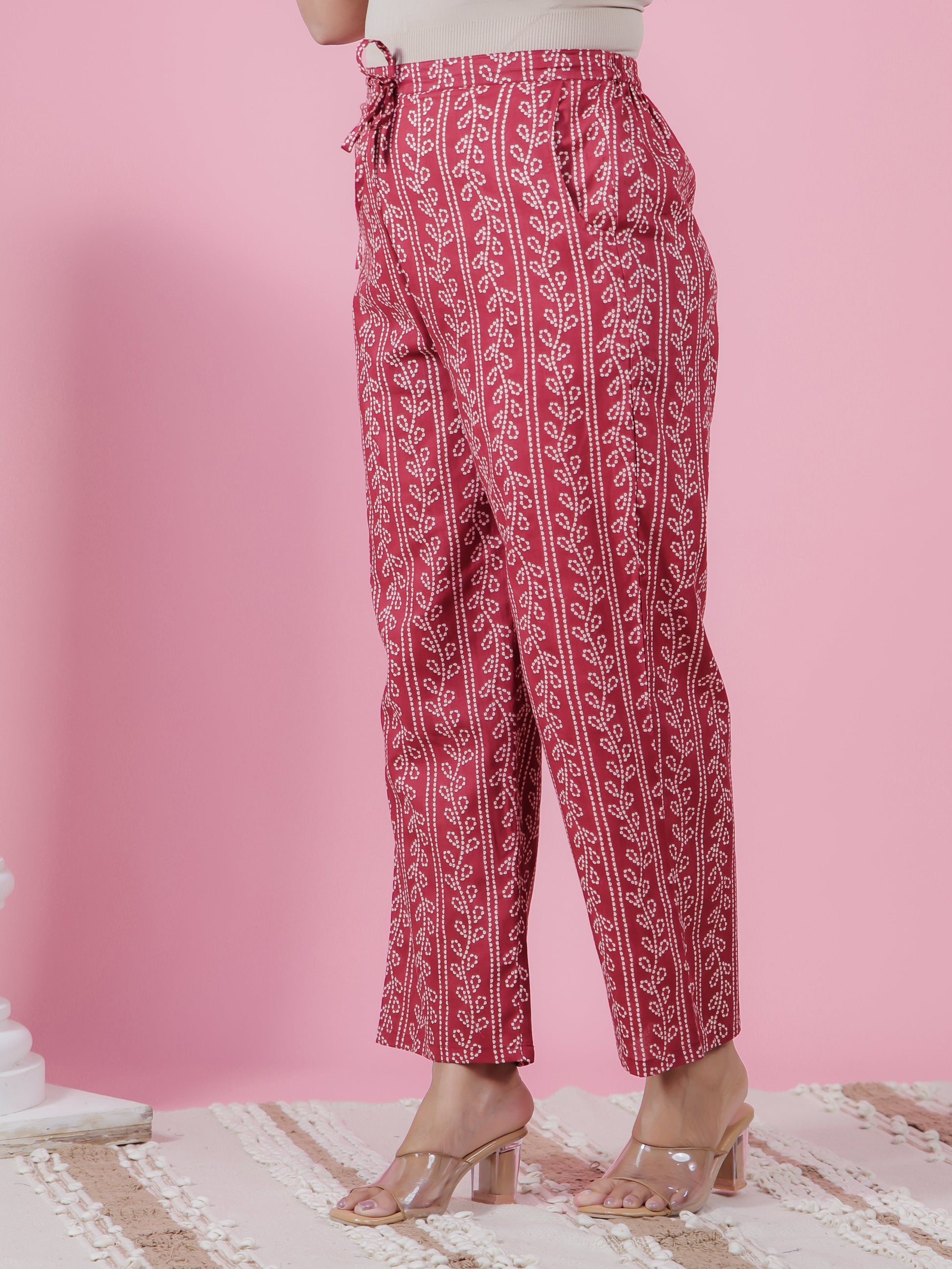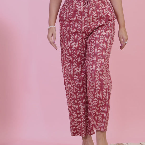 Crafted from Soft Cotton, these Maroon bottoms are designed for all-day comfort. The chic Striped work adds flair, and pockets provide convenience for carrying essentials. Great for casual days, shopping trips, or work, these bottoms pair effortlessly with your favourite tops. Their durable design and easy maintenance make them a practical staple.