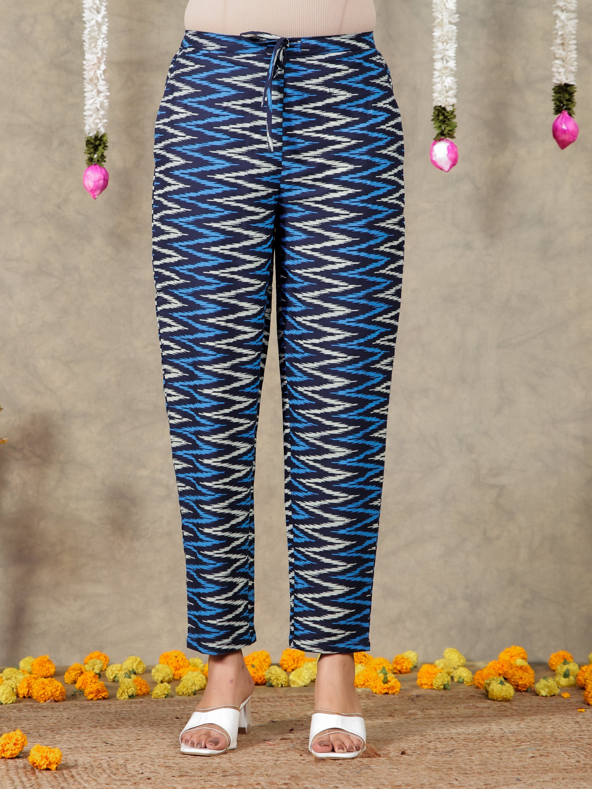 Crafted from Linen Cotton, these Navy Blue bottoms are designed for all-day comfort. The chic Chevron work adds flair, and pockets provide convenience for carrying essentials. Great for casual days, shopping trips, or work, these bottoms pair effortlessly with your favourite tops. Their durable design and easy maintenance make them a practical staple.
