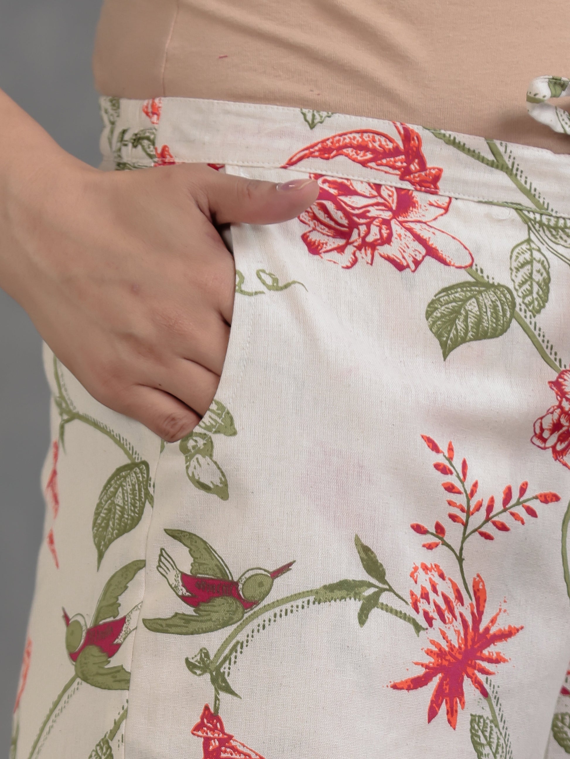 Linen Cotton Floral Off White Trousers