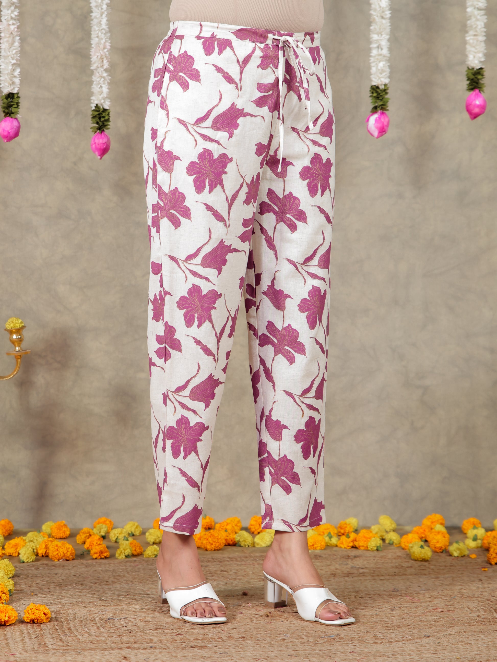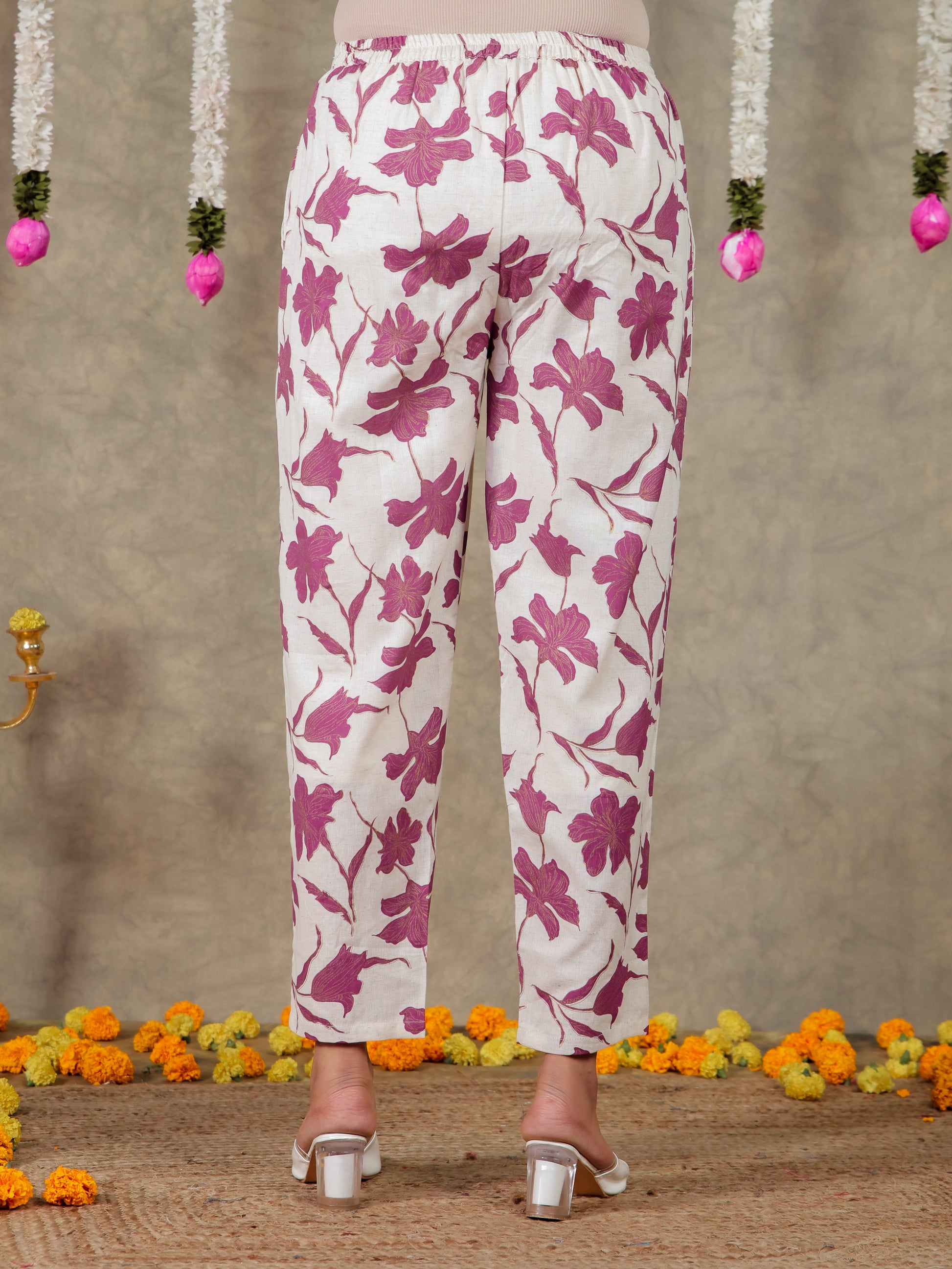 Crafted from Linen Cotton, these Off White bottoms are designed for all-day comfort. The chic Floral work adds flair, and pockets provide convenience for carrying essentials. Great for casual days, shopping trips, or work, these bottoms pair effortlessly with your favourite tops. Their durable design and easy maintenance make them a practical staple.