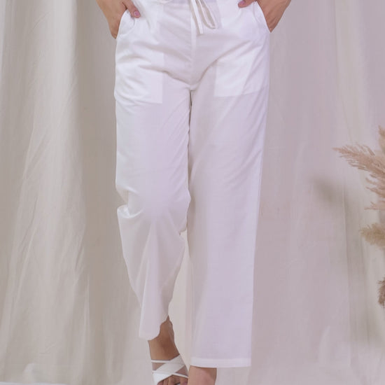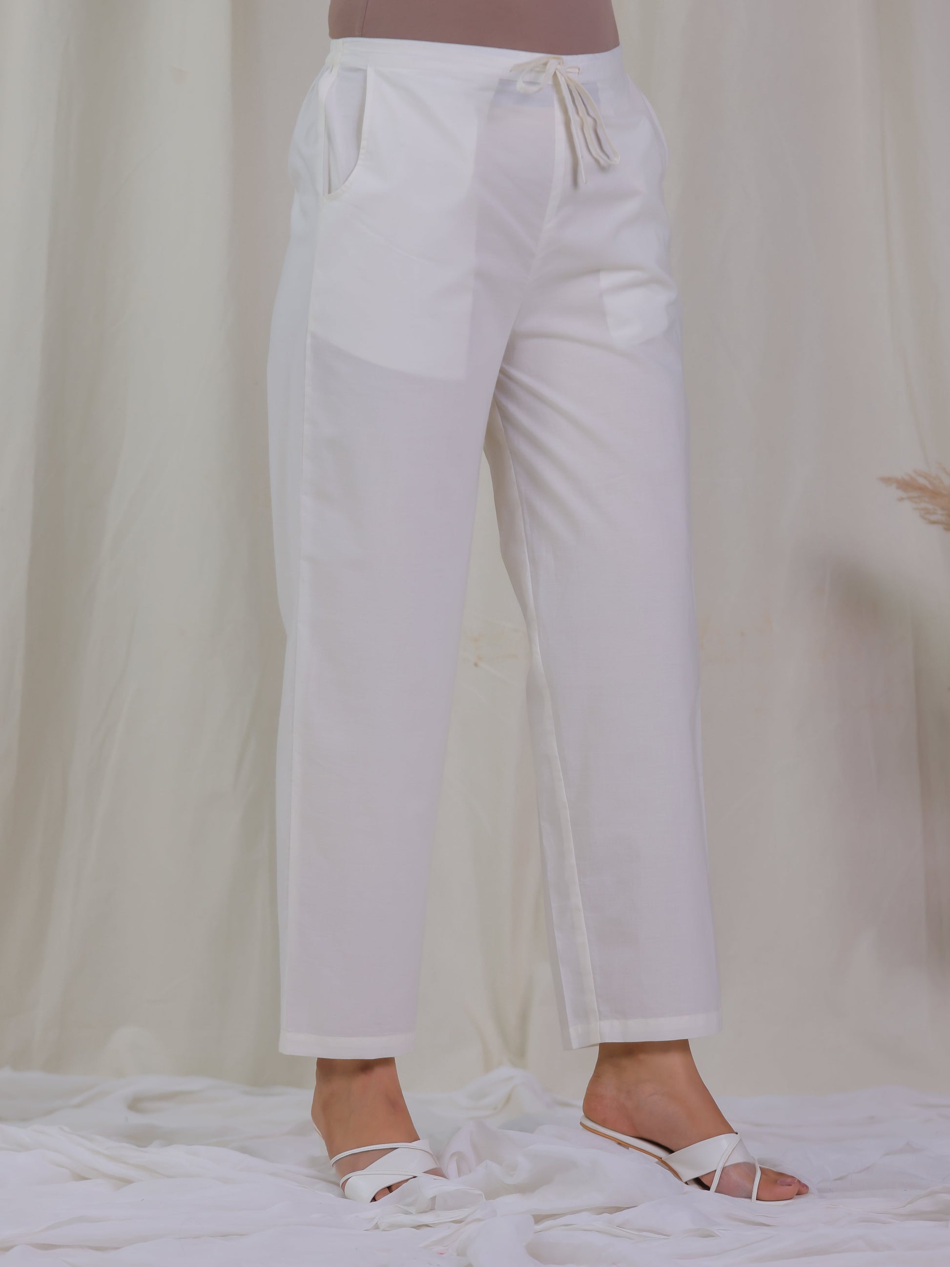 Soft Cotton Solid Off White Trousers Straight Trousers