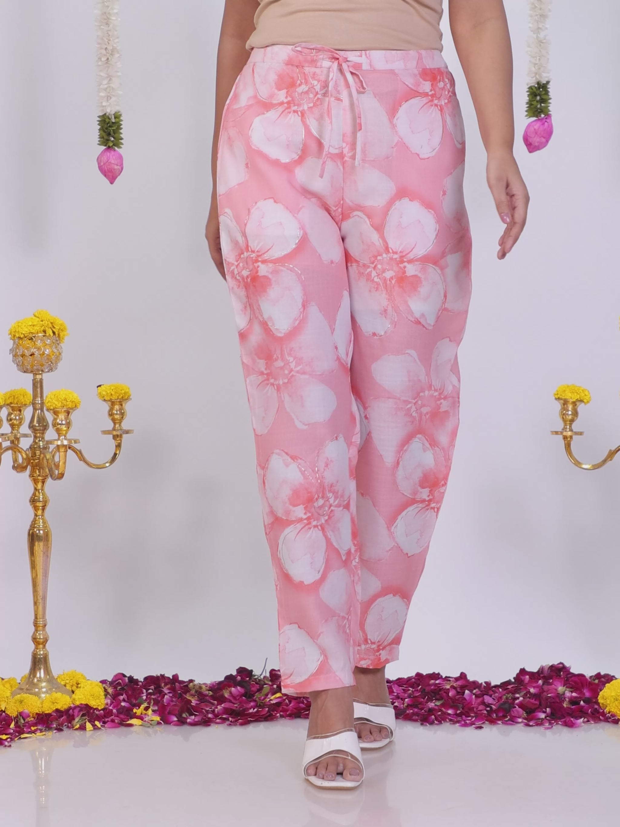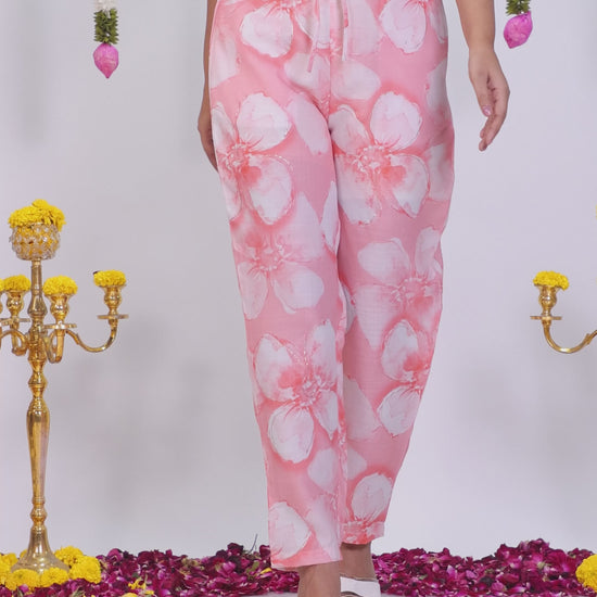 Vertigan Floral Peach Straight Trousers