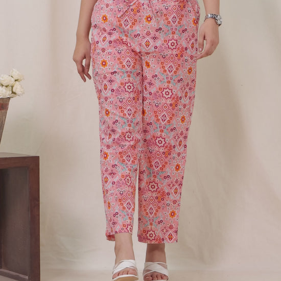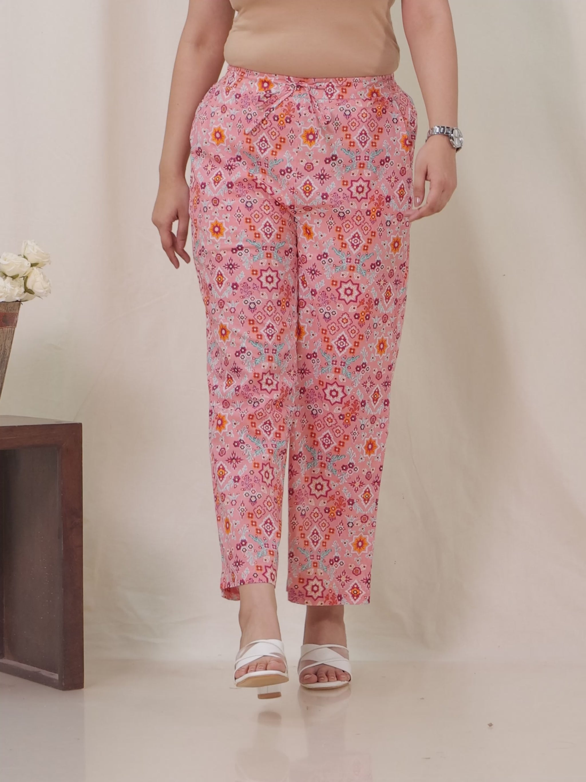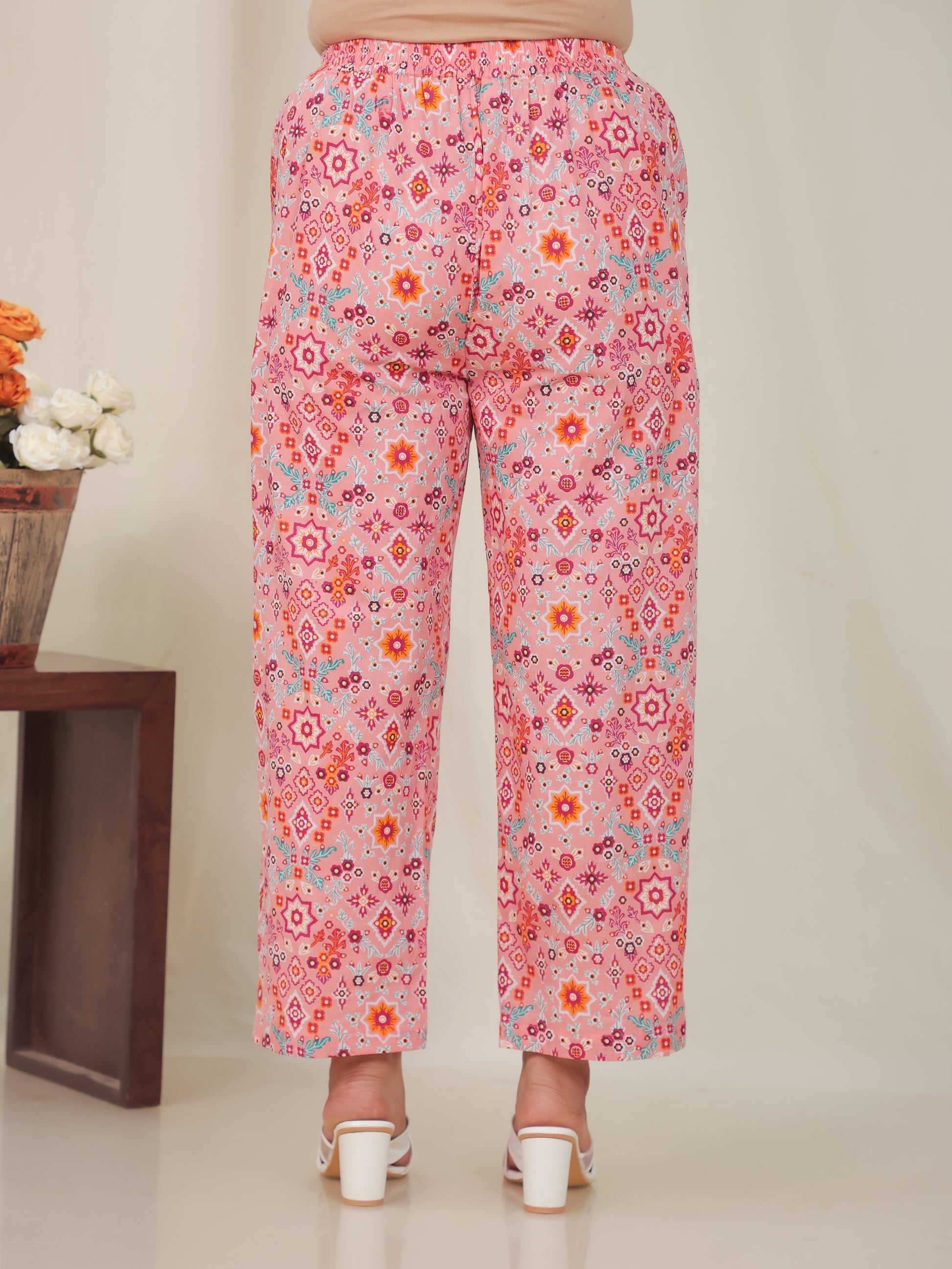 Crafted from Soft Cotton, these Peach bottoms are designed for all-day comfort. The chic Geometric work adds flair, and pockets provide convenience for carrying essentials. Great for casual days, shopping trips, or work, these bottoms pair effortlessly with your favourite tops. Their durable design and easy maintenance make them a practical staple.