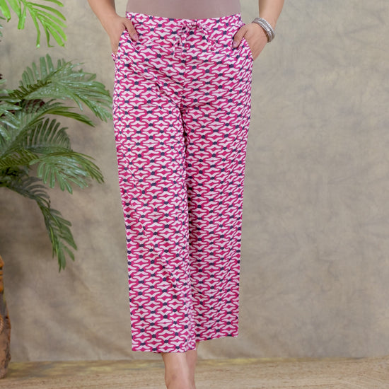 Upgrade your wardrobe with these Pink bottoms made from lightweight Soft Cotton. The Geometric accents bring subtle charm, while pockets make them practical for all-day wear. Perfect for pairing with ethnic kurtas or western blouses, these bottoms are a go-to choice for comfort and style. Easy care ensures they stay fresh season after season.