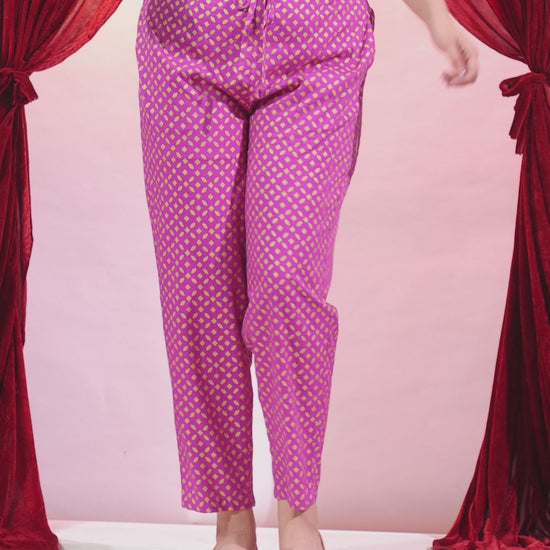 Viscose Gold foil Pink Tapered Tapered Trousers