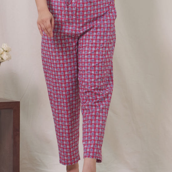 Soft Cotton Mughal Print Pink Trousers Tapered Trousers