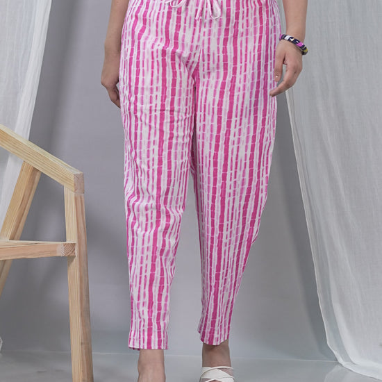 Soft Cotton Striped Pink Tapered Tapered Trousers