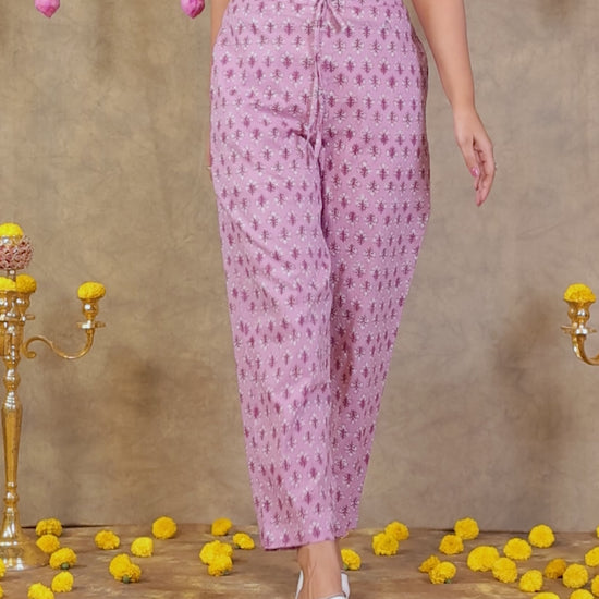 Soft Cotton Floral Purple Tapered Trousers