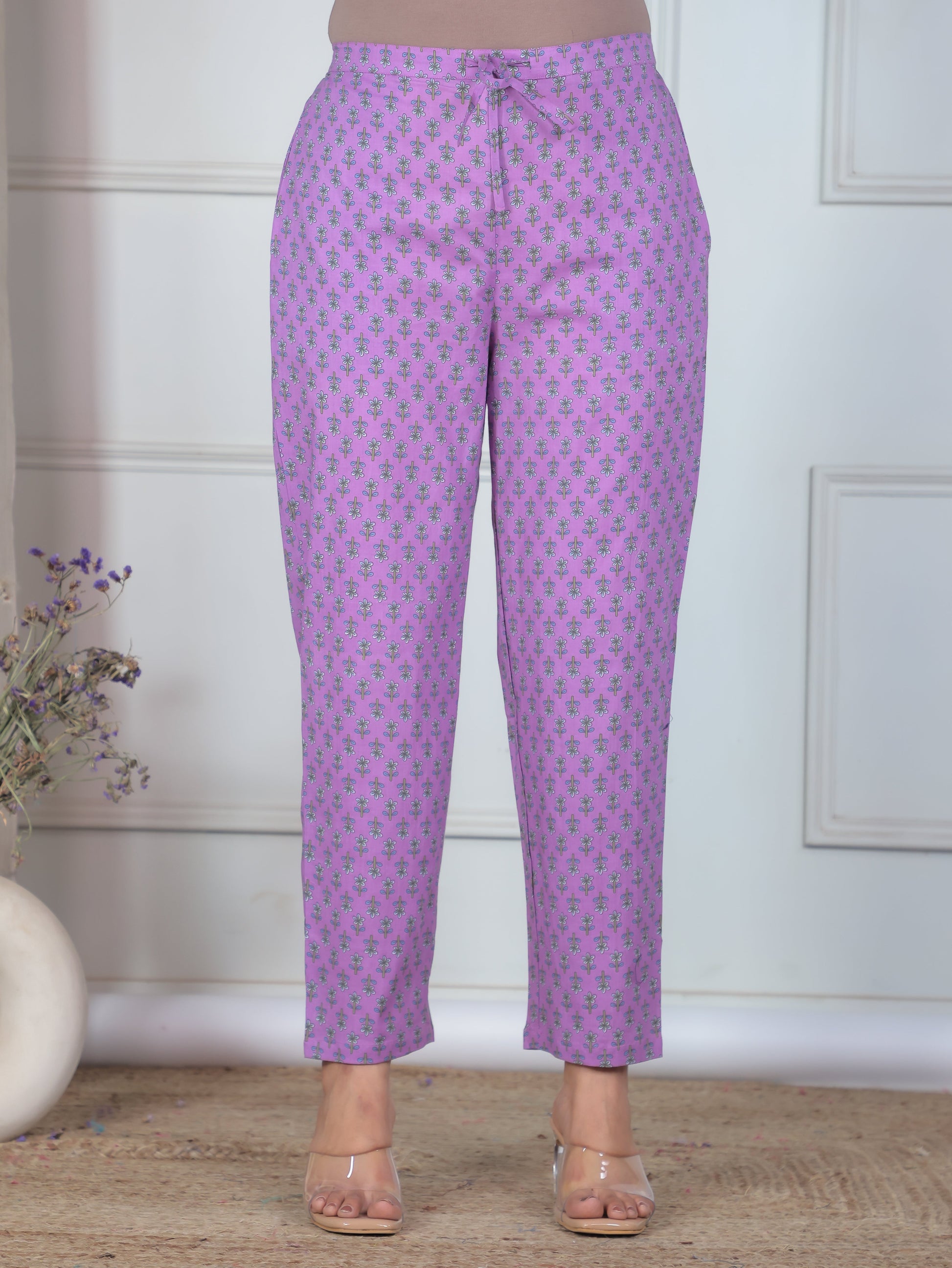 These Purple trouser crafted from breathable Soft Cotton combine comfort and style. The Floral pattern adds a modern twist, while pockets make them practical for daily wear. Ideal for casual outings or workdays, they pair effortlessly with kurtas, tops, or tunics. Keep them looking fresh with minimal care and enjoy their all-day ease.