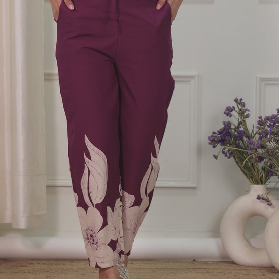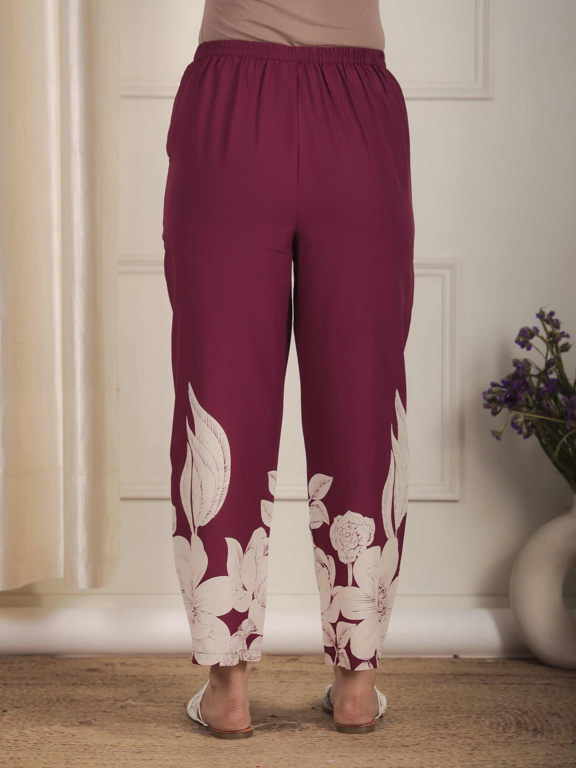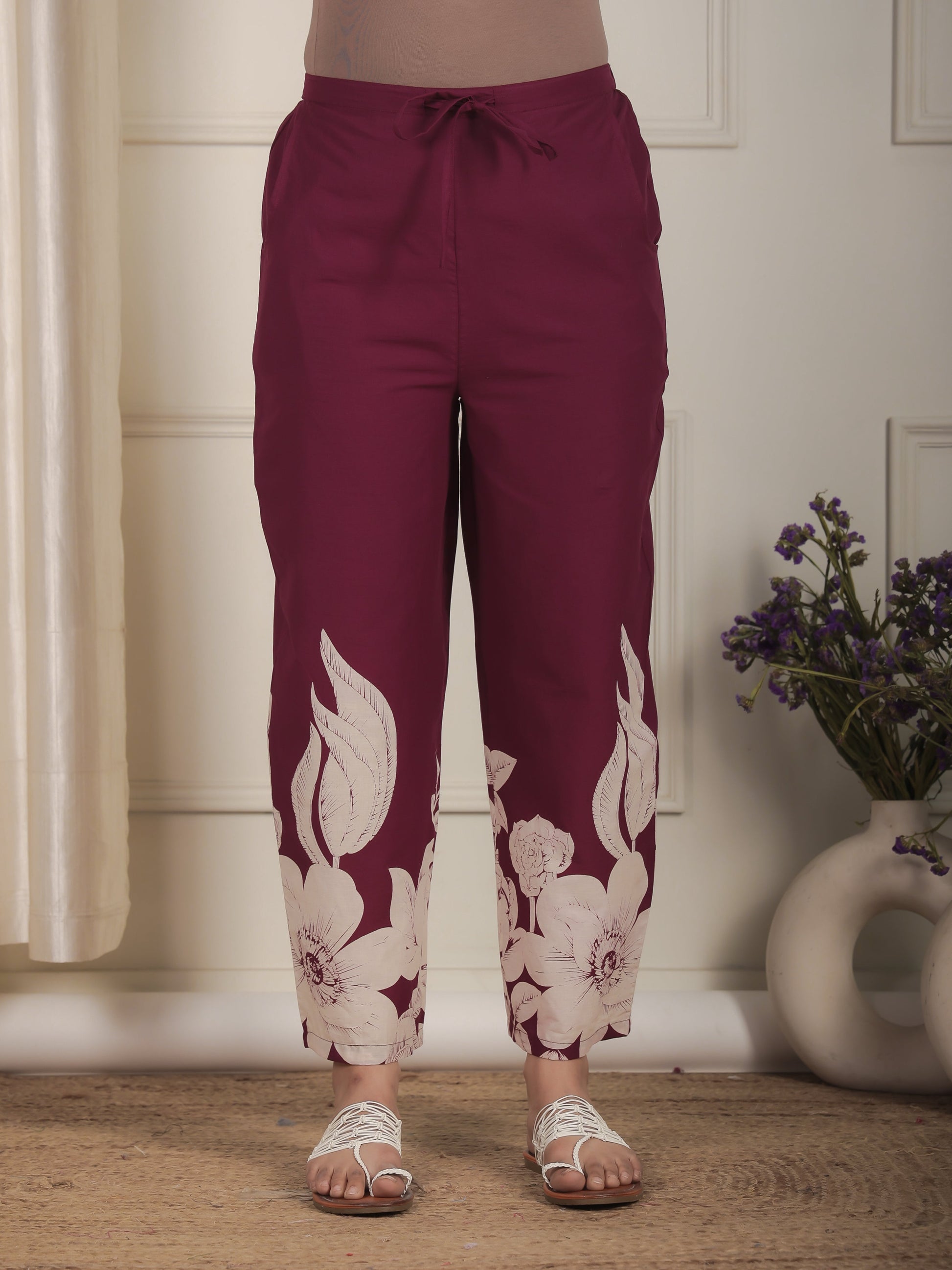 Upgrade your wardrobe with these Purple bottoms made from lightweight Soft Cotton. The Placement Print accents bring subtle charm, while pockets make them practical for all-day wear. Perfect for pairing with ethnic kurtas or western blouses, these bottoms are a go-to choice for comfort and style. Easy care ensures they stay fresh season after season.