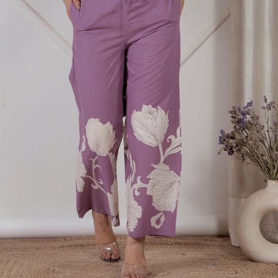 Soft Cotton Placement Print Purple Palazzo