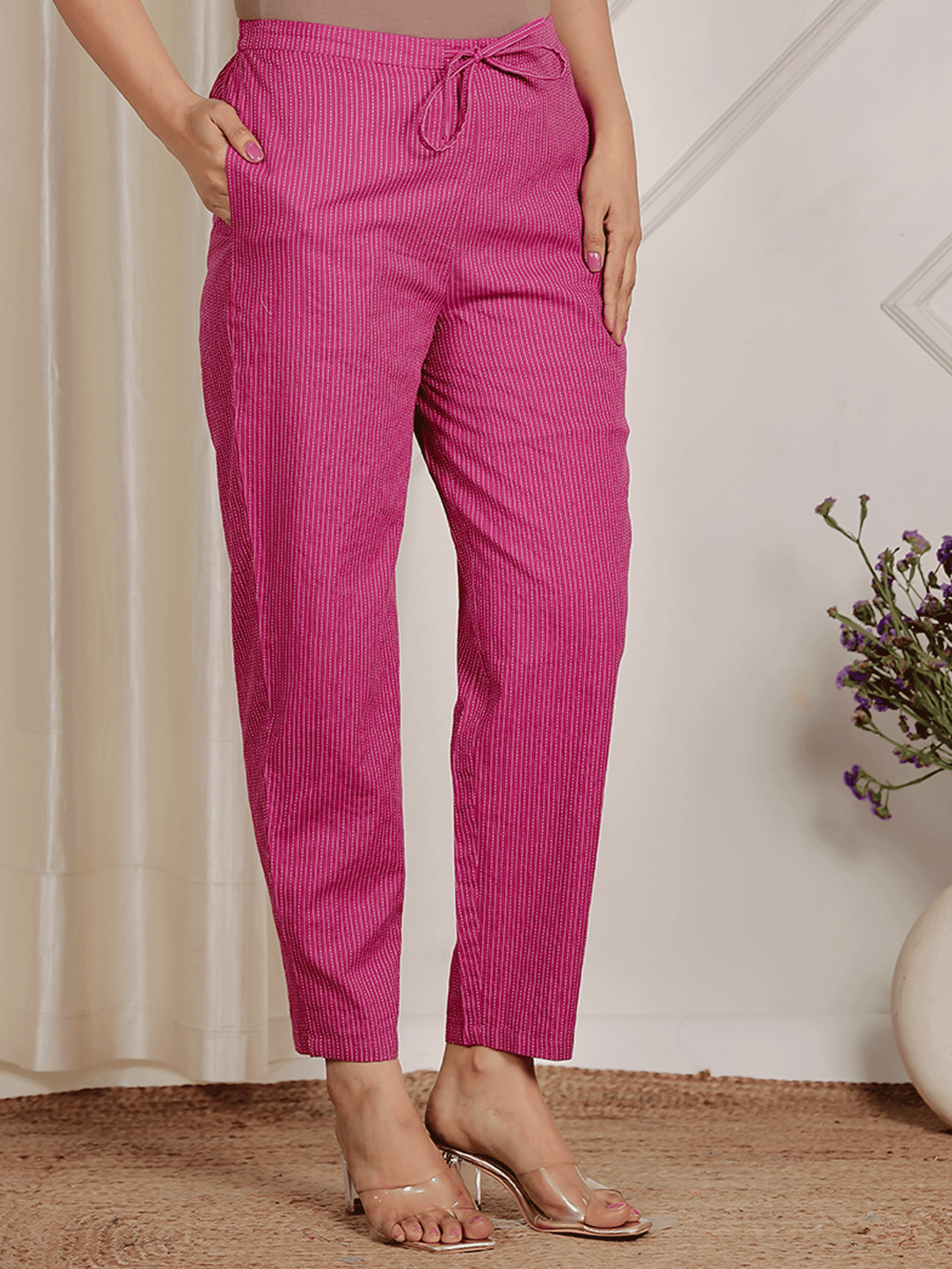 Designed for both comfort and versatility, these Kantha Cotton Purple bottoms feature a stylish Solid design and pockets for added functionality. Perfect for office looks or weekend errands, they offer a flattering fit that works with a variety of tops. Pair with minimal accessories for a polished finish and enjoy effortless care.