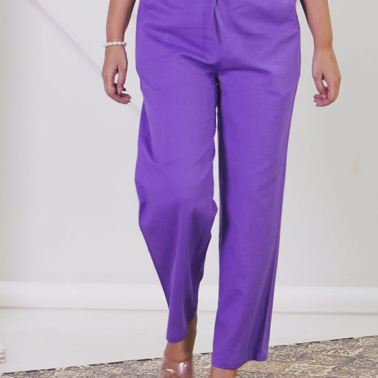 Designed for both comfort and versatility, these Linen Cotton Purple bottoms feature a stylish Solid design and pockets for added functionality. Perfect for office looks or weekend errands, they offer a flattering fit that works with a variety of tops. Pair with minimal accessories for a polished finish and enjoy effortless care.