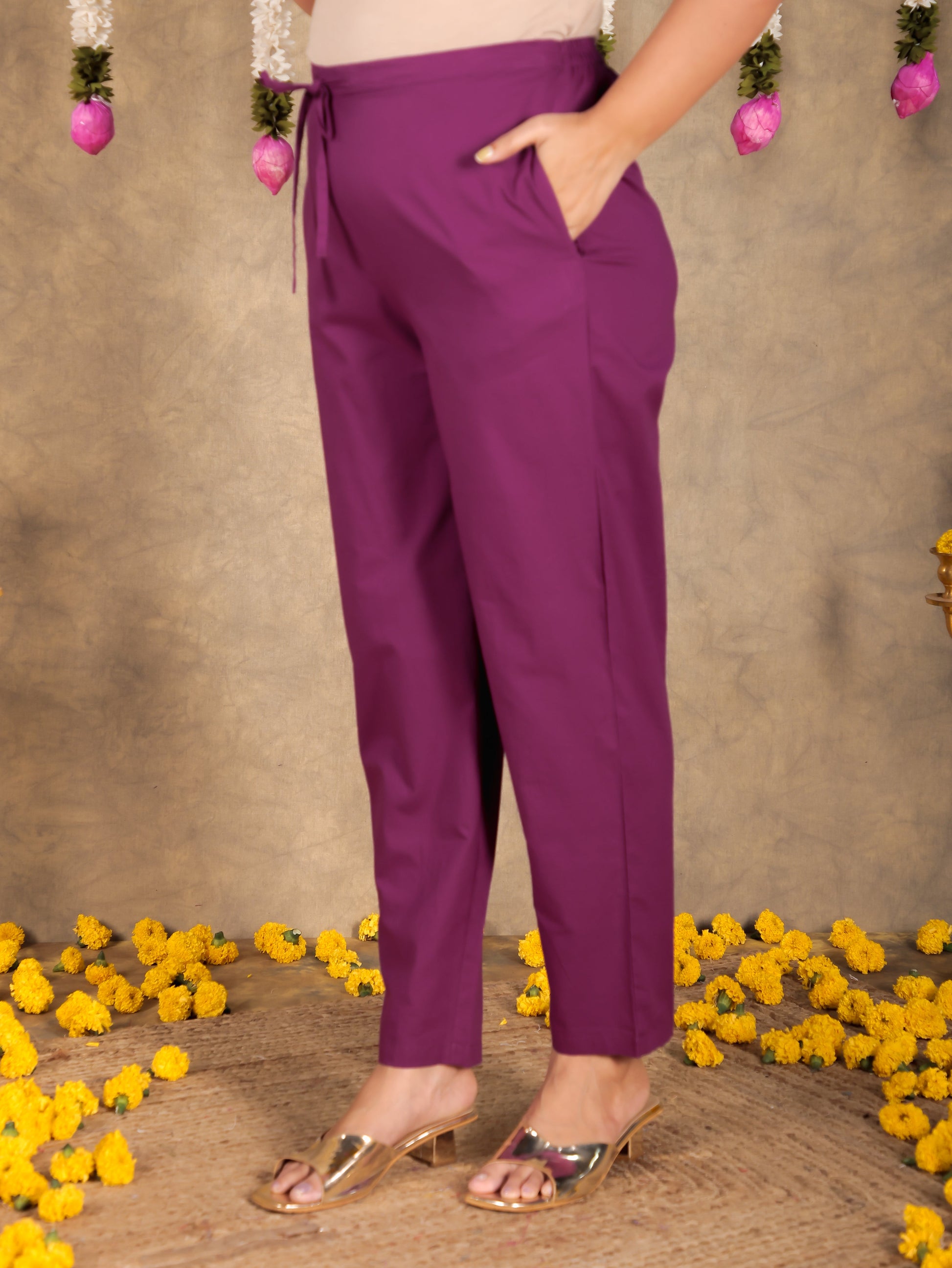 Crafted from Soft Cotton, these Purple bottoms are designed for all-day comfort. The chic Solid work adds flair, and pockets provide convenience for carrying essentials. Great for casual days, shopping trips, or work, these bottoms pair effortlessly with your favourite tops. Their durable design and easy maintenance make them a practical staple.