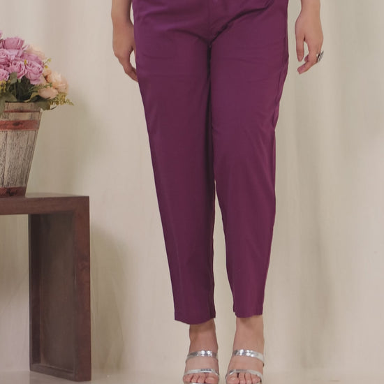 Soft Cotton Solid Purple Tapered Tapered Trousers