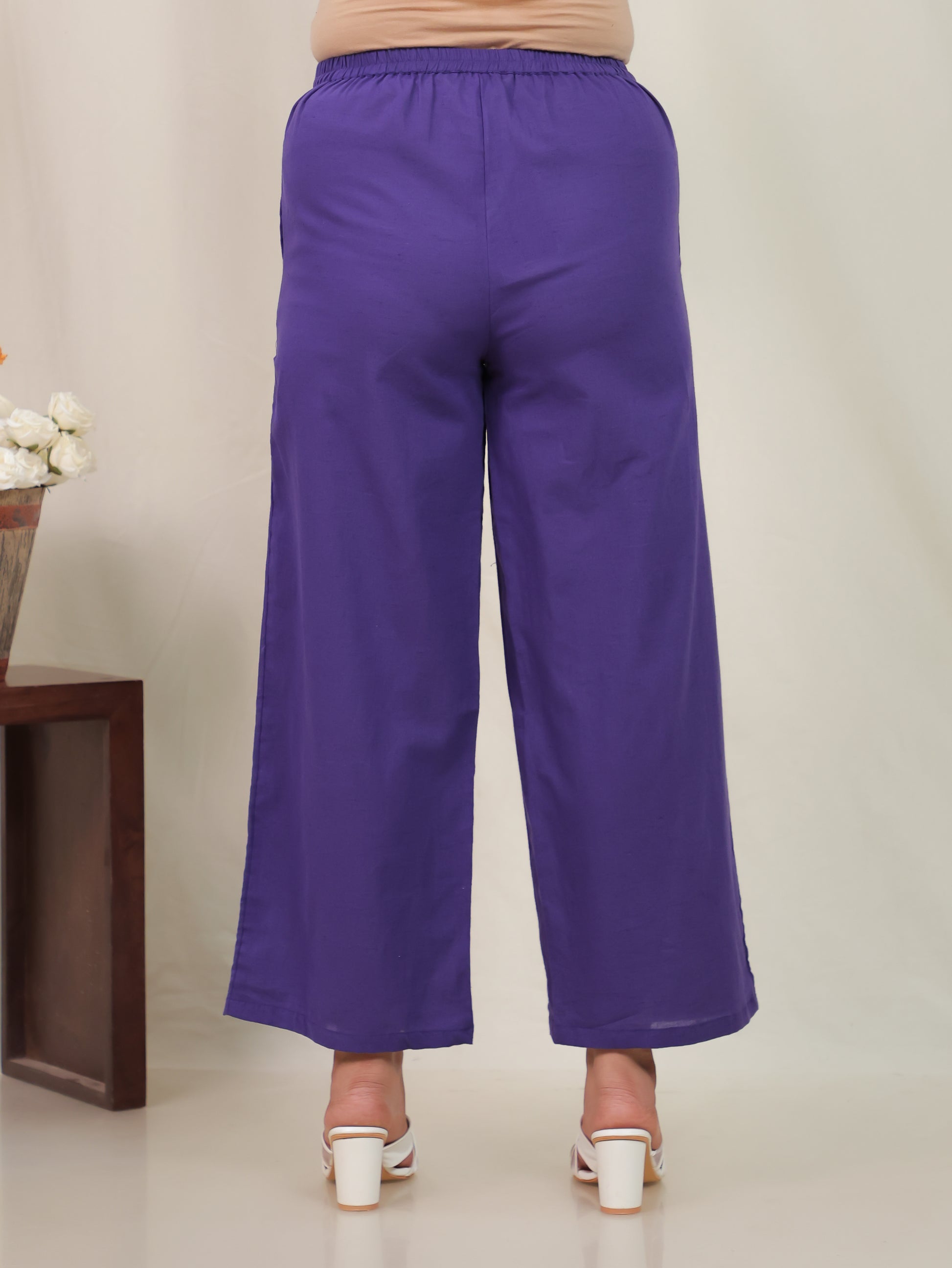 Crafted from Viscose, these Purple bottoms are designed for all-day comfort. The chic Solid work adds flair, and pockets provide convenience for carrying essentials. Great for casual days, shopping trips, or work, these bottoms pair effortlessly with your favourite tops. Their durable design and easy maintenance make them a practical staple.