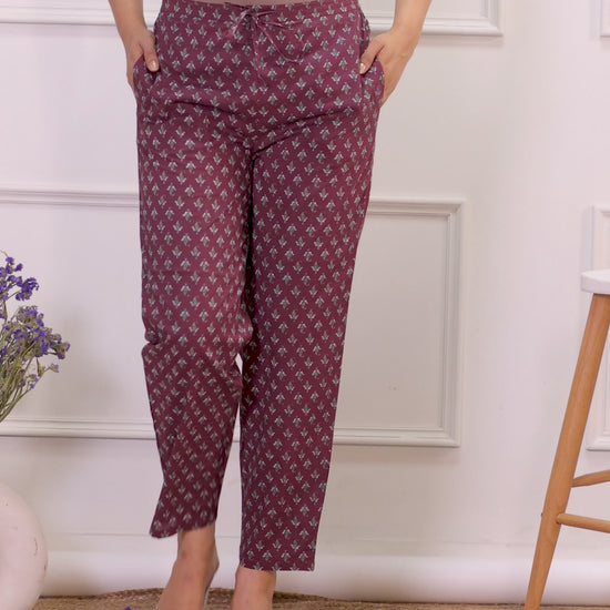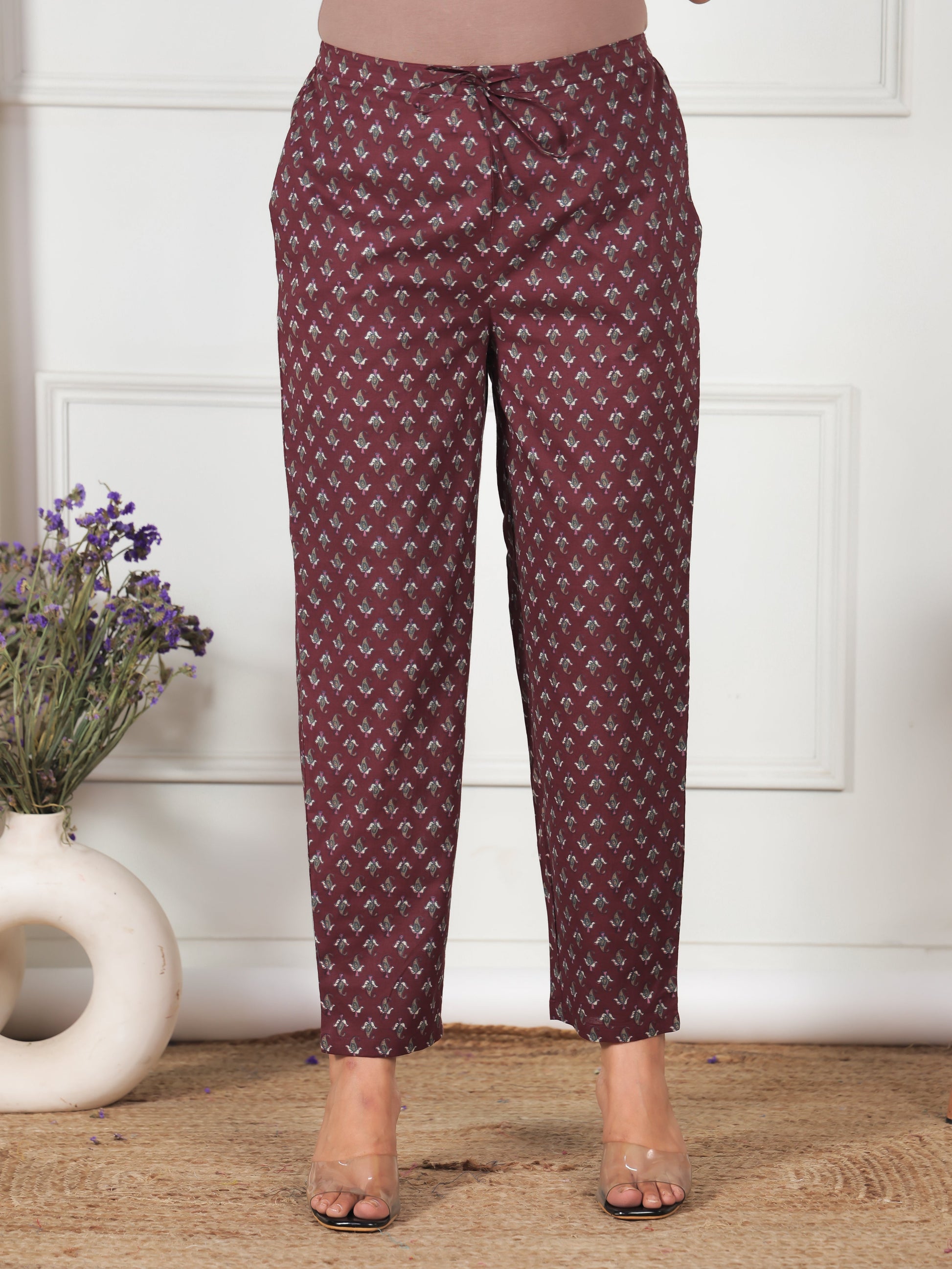 Soft Cotton Floral Maroon Tapered Trousers