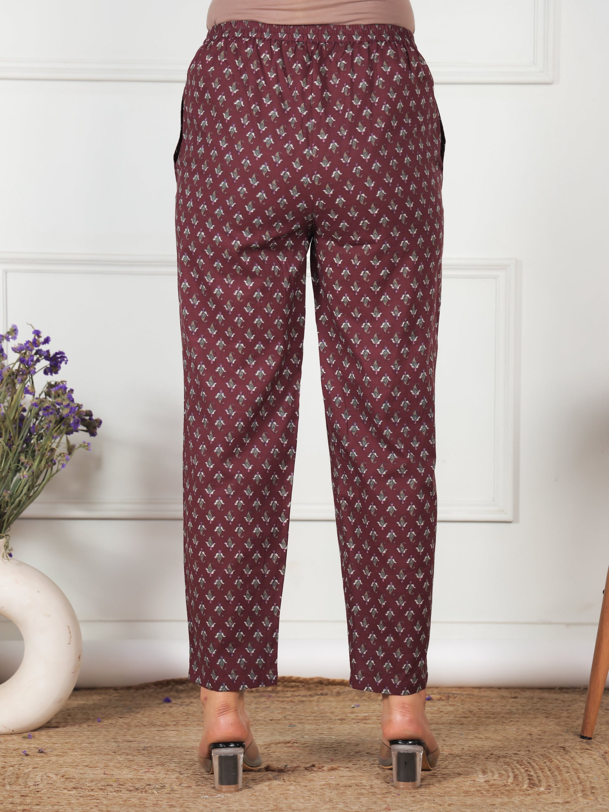 Crafted from Soft Cotton, these Maroon bottoms are designed for all-day comfort. The chic Floral work adds flair, and pockets provide convenience for carrying essentials. Great for casual days, shopping trips, or work, these bottoms pair effortlessly with your favourite tops. Their durable design and easy maintenance make them a practical staple.