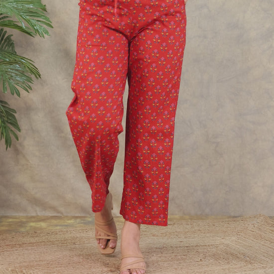 Upgrade your wardrobe with these Red bottoms made from lightweight Soft Cotton. The Floral accents bring subtle charm, while pockets make them practical for all-day wear. Perfect for pairing with ethnic kurtas or western blouses, these bottoms are a go-to choice for comfort and style. Easy care ensures they stay fresh season after season.