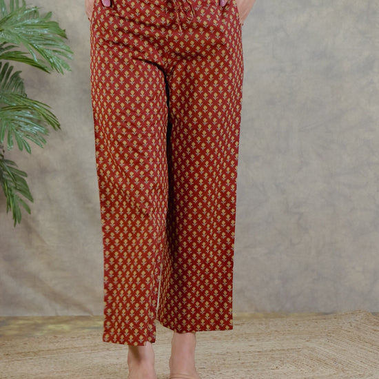 Upgrade your wardrobe with these Red bottoms made from lightweight Soft Cotton. The Geometric accents bring subtle charm, while pockets make them practical for all-day wear. Perfect for pairing with ethnic kurtas or western blouses, these bottoms are a go-to choice for comfort and style. Easy care ensures they stay fresh season after season.