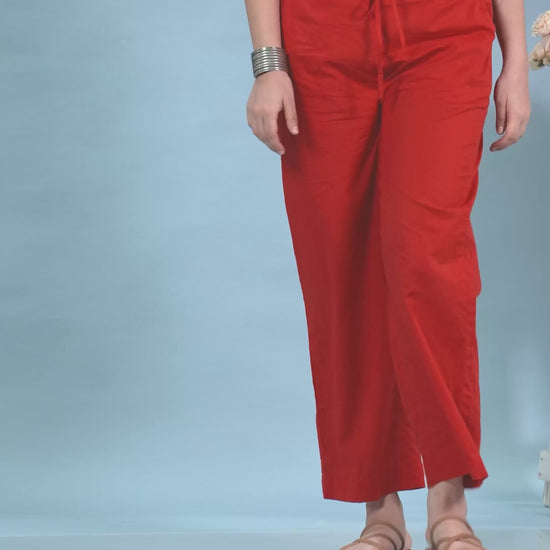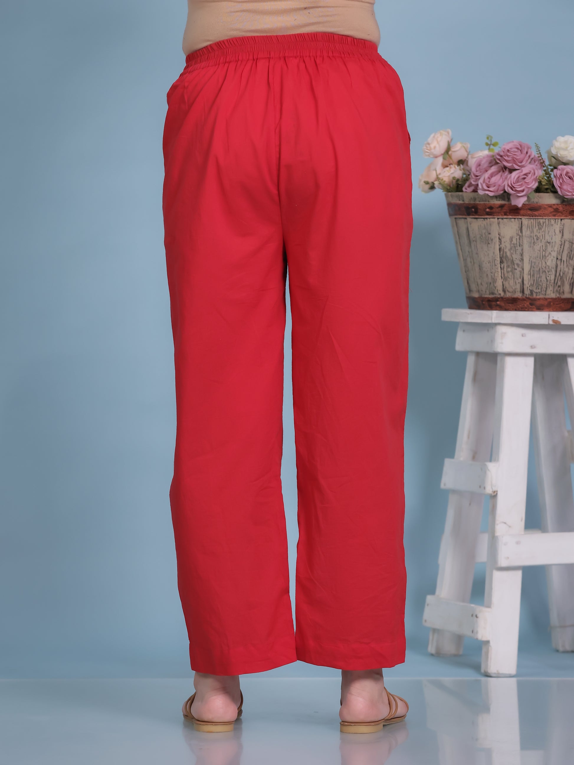 Soft Cotton Solid Red Straight Trousers