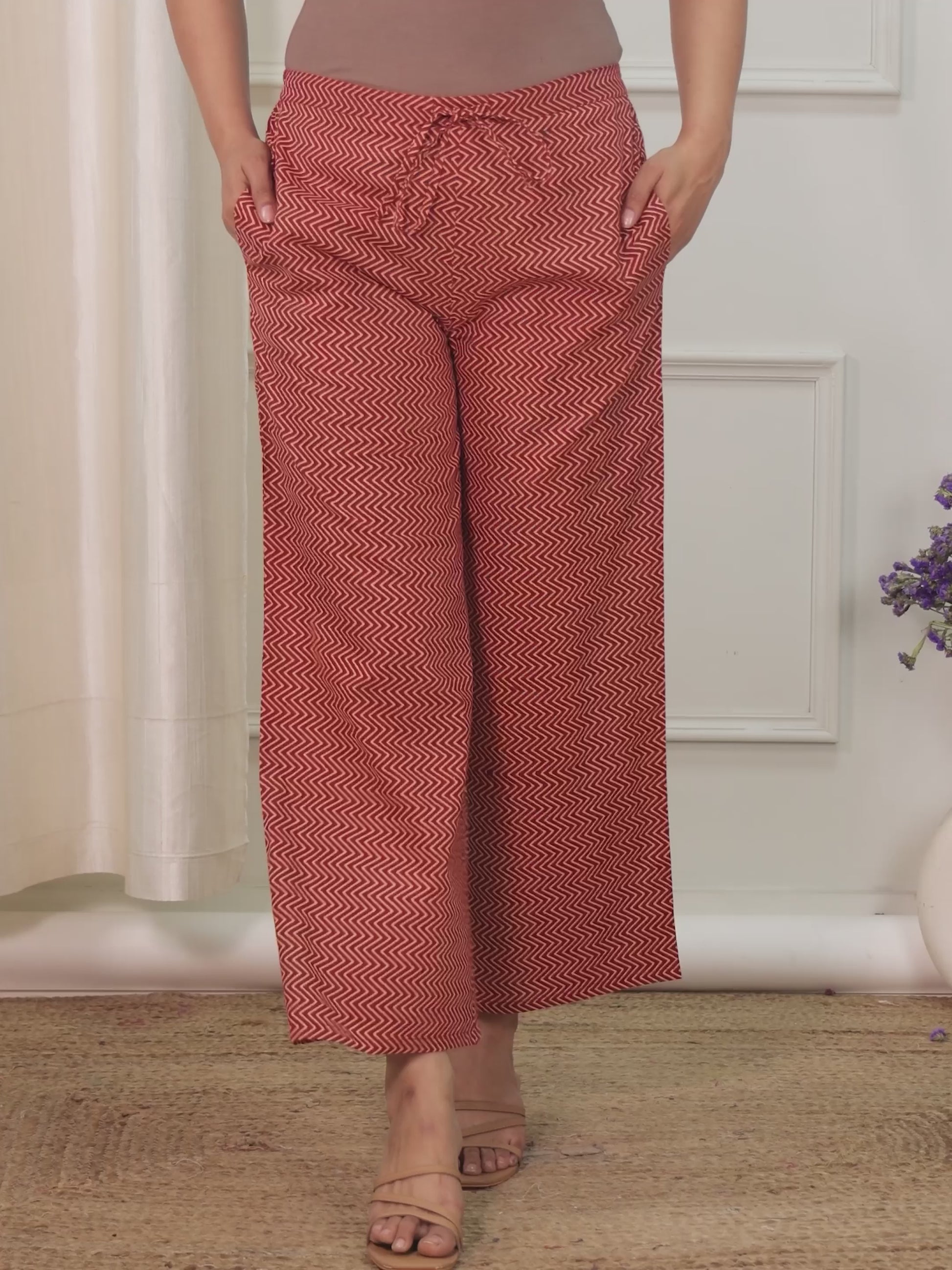 Soft Cotton Striped Red Palazzo