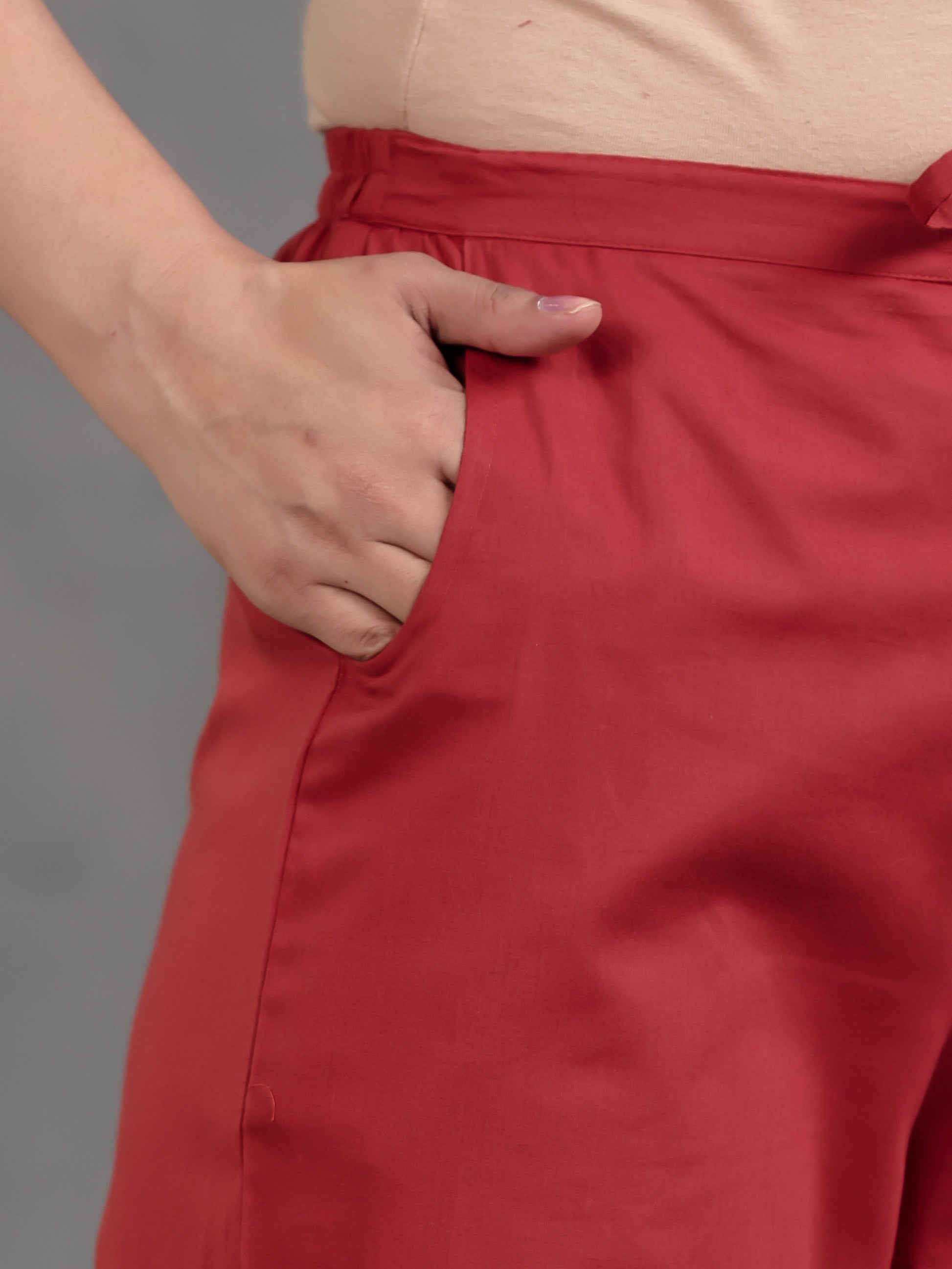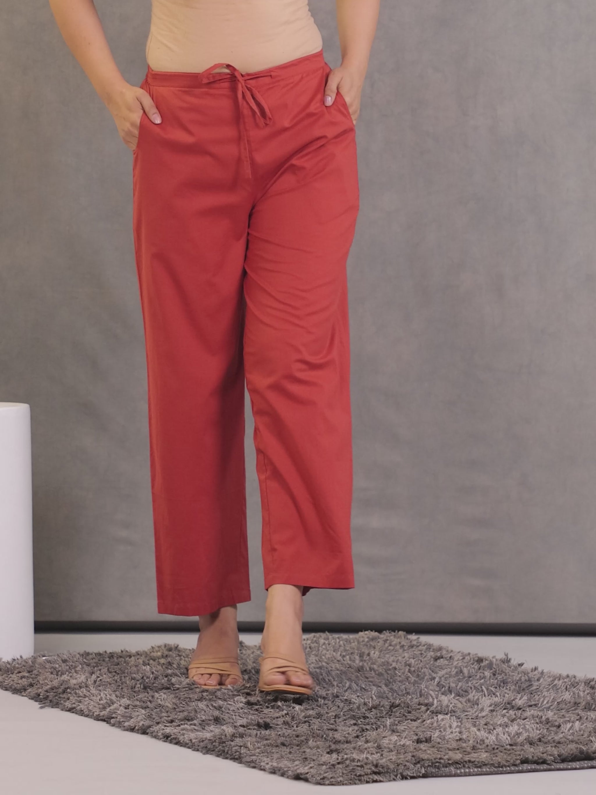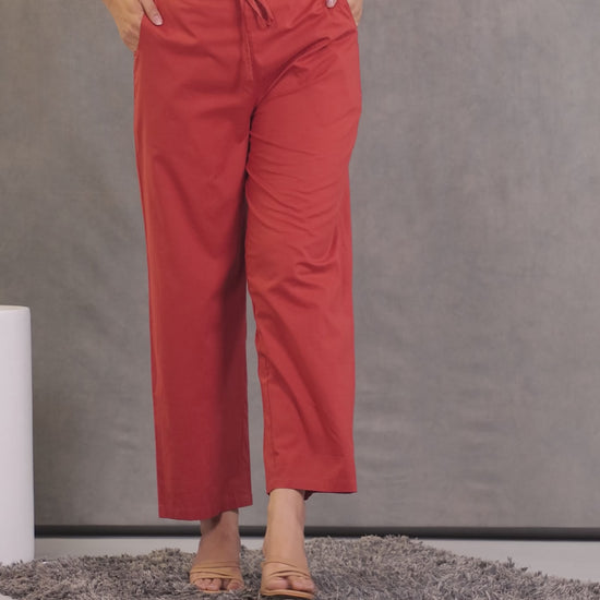 Soft Cotton Solid Rust Straight Trousers