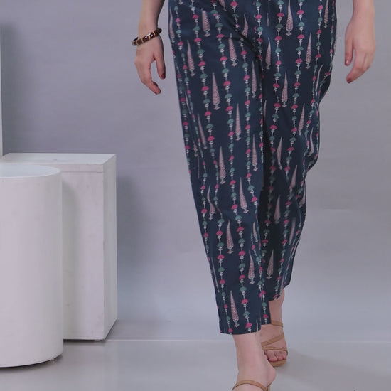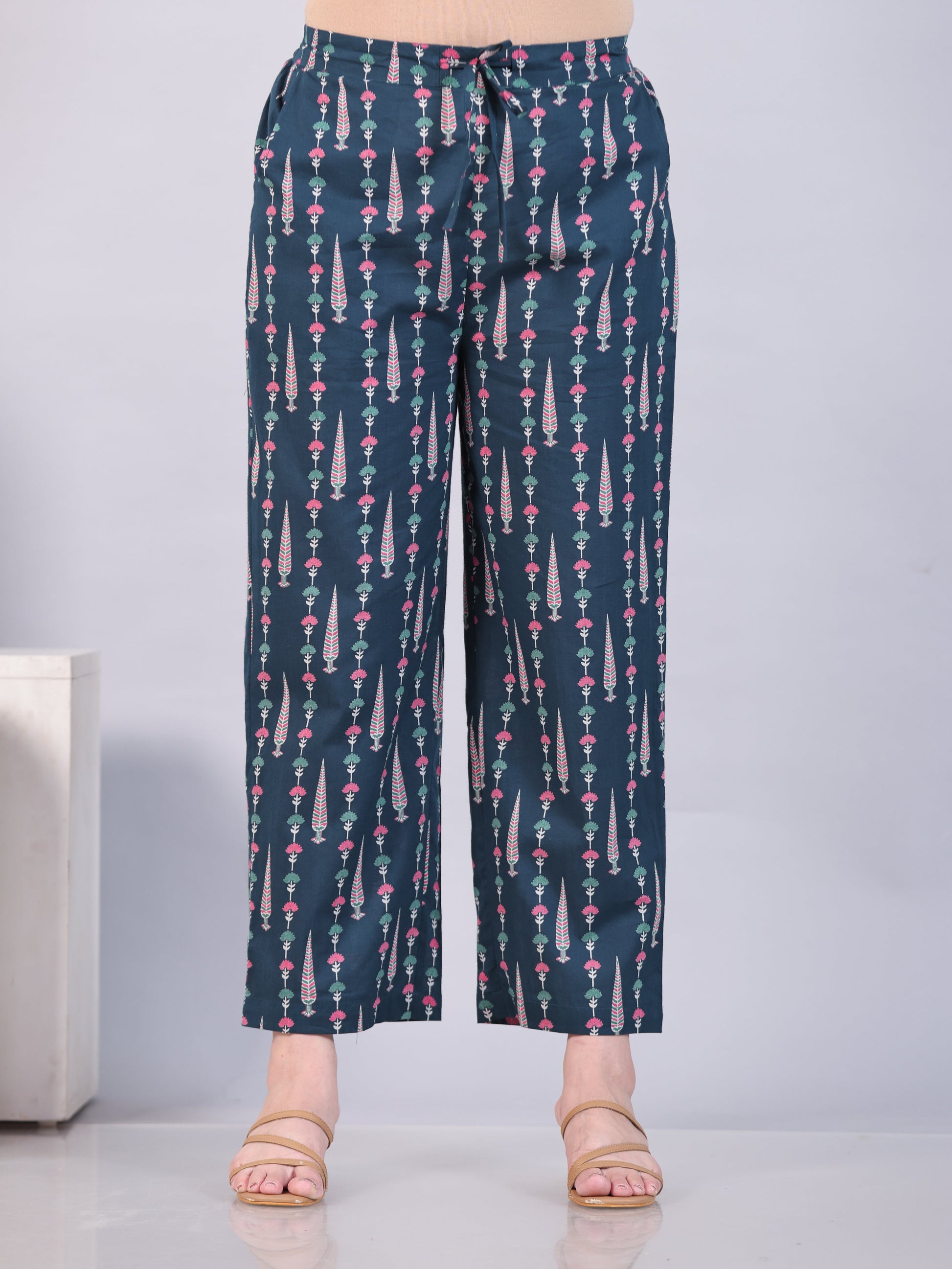 Soft Cotton Floral Teal Trousers Straight Trousers