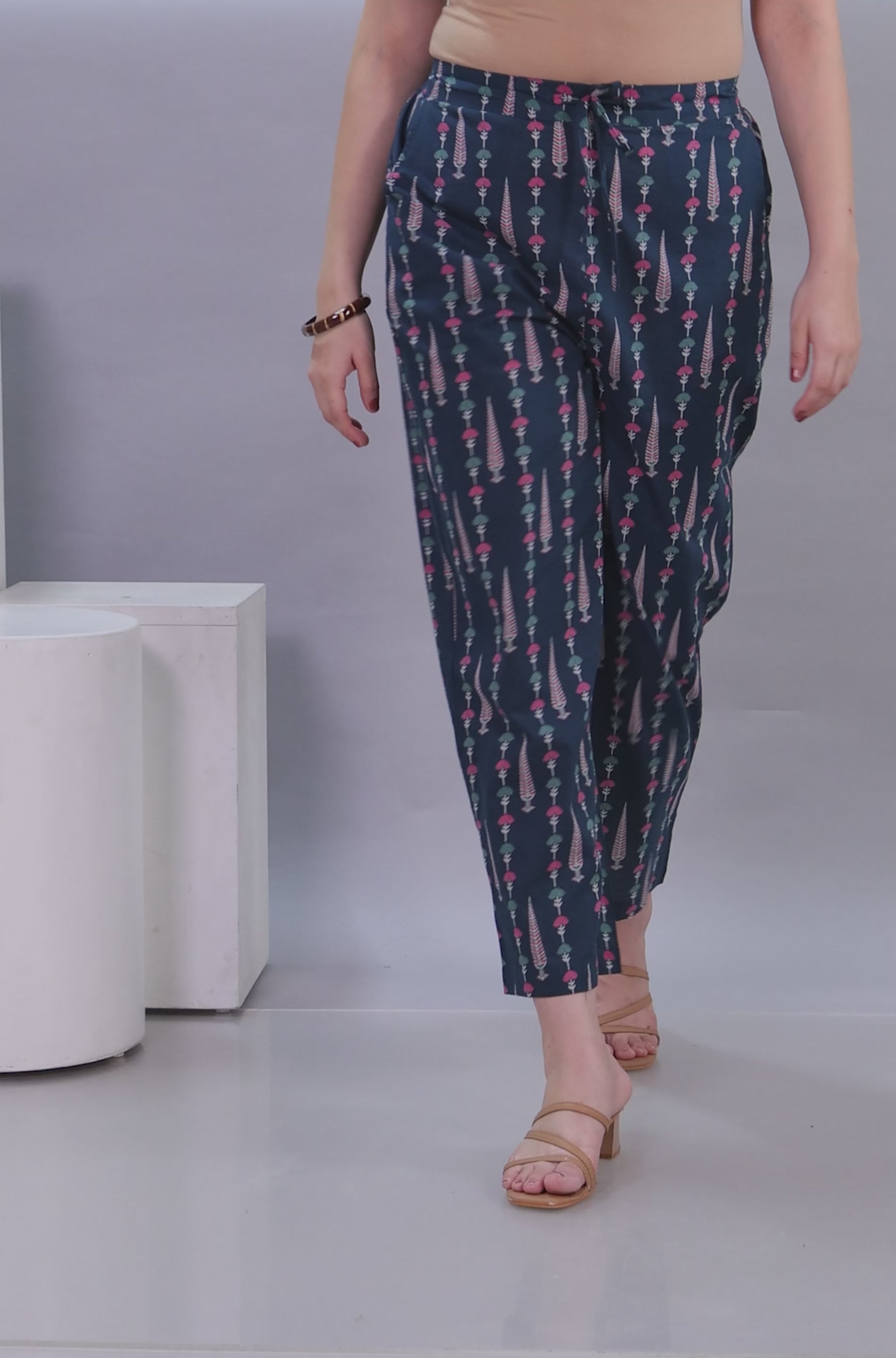 Soft Cotton Floral Teal Trousers (Straight)