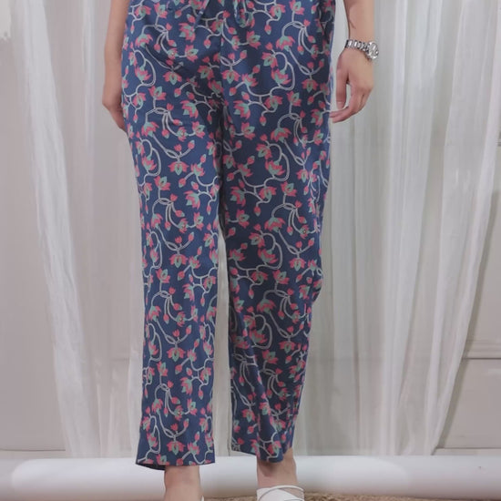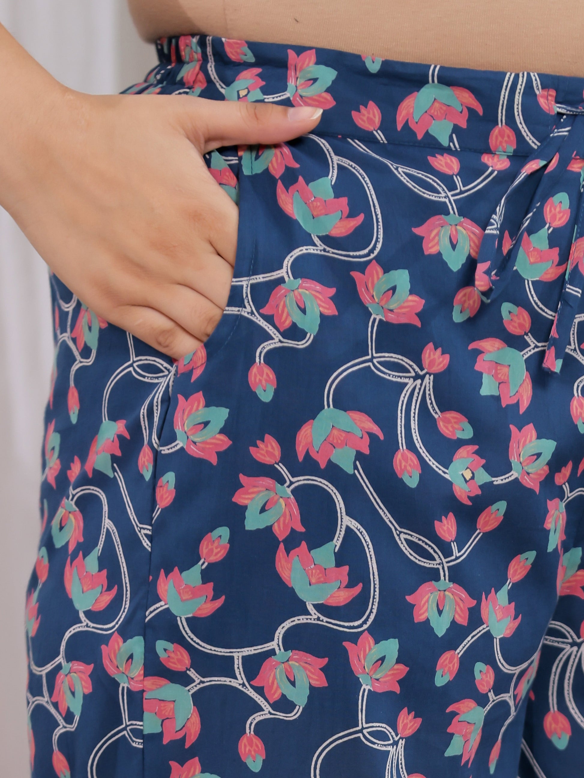 Soft Cotton Floral Teal Straight Trousers