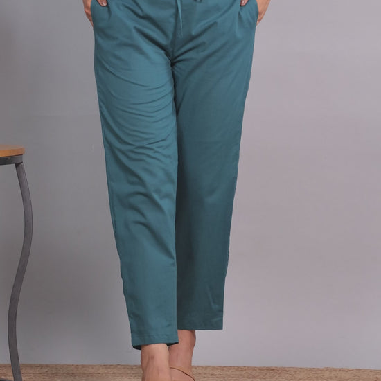 Soft Cotton Solid Teal Trousers Tapered Trousers