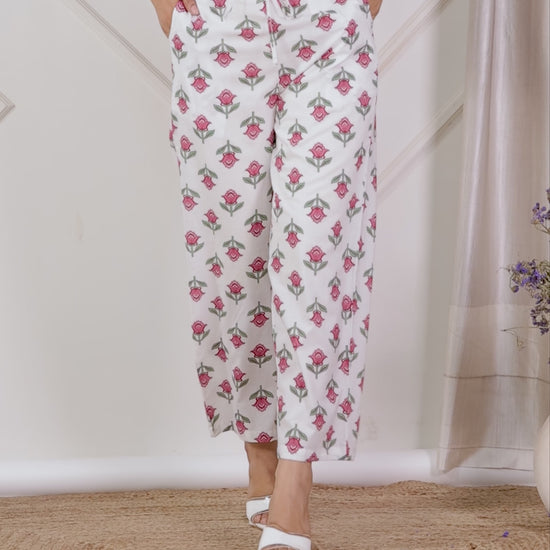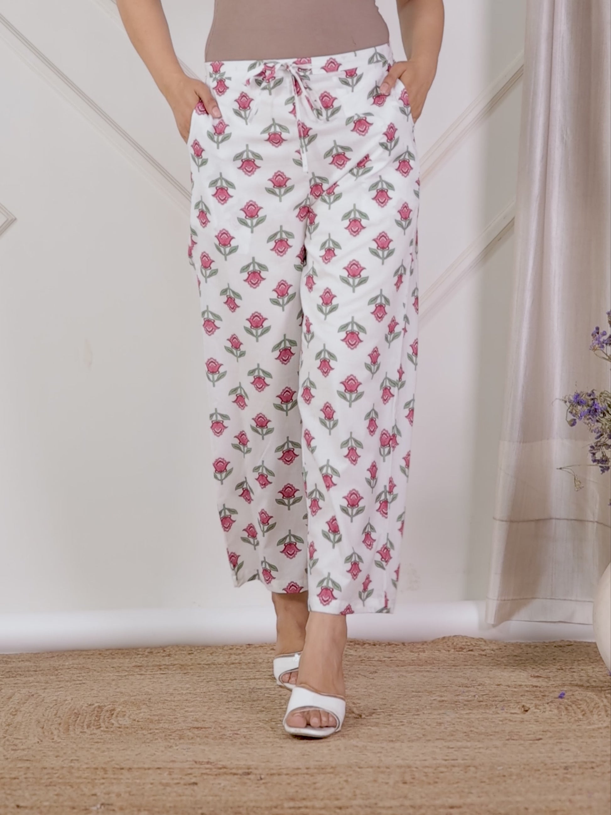 Crafted from Soft Cotton, these White bottoms are designed for all-day comfort. The chic Floral work adds flair, and pockets provide convenience for carrying essentials. Great for casual days, shopping trips, or work, these bottoms pair effortlessly with your favourite tops. Their durable design and easy maintenance make them a practical staple.