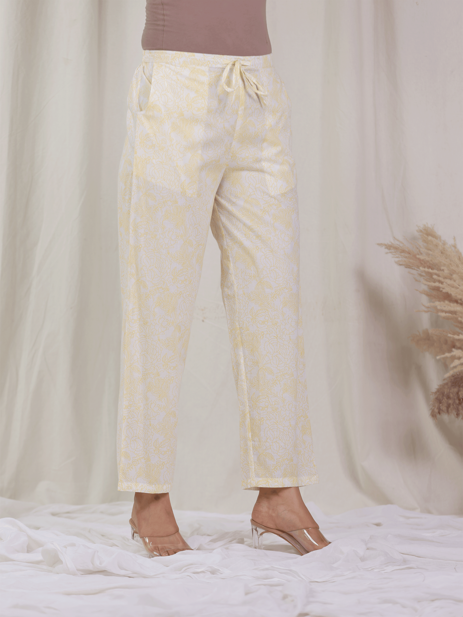 Soft Cotton Floral Yellow Straight Trousers
