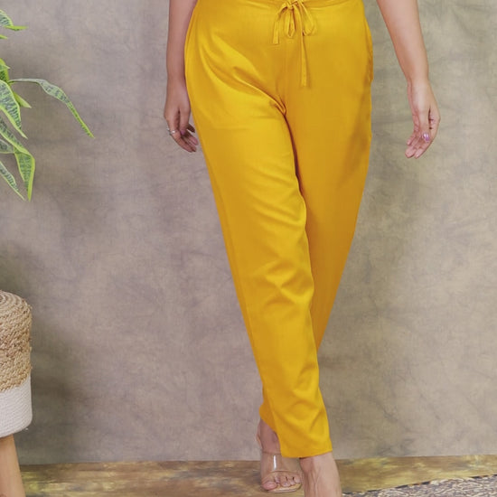 Upgrade your wardrobe with these Yellow bottoms made from lightweight Cotton Dobby. The Solid accents bring subtle charm, while pockets make them practical for all-day wear. Perfect for pairing with ethnic kurtas or western blouses, these bottoms are a go-to choice for comfort and style. Easy care ensures they stay fresh season after season.