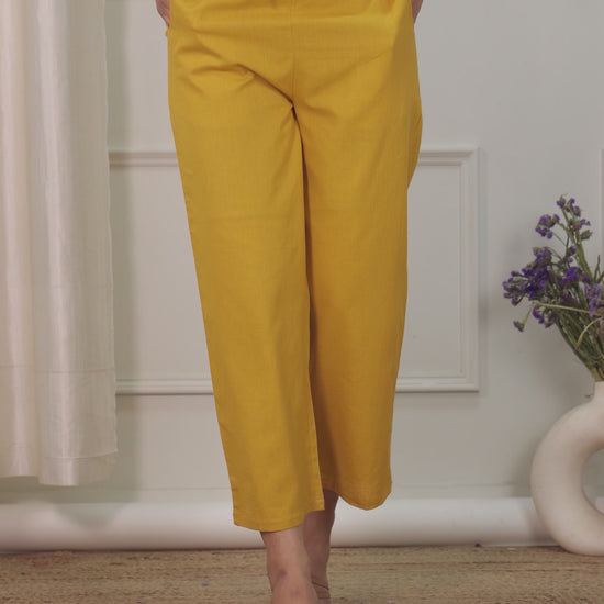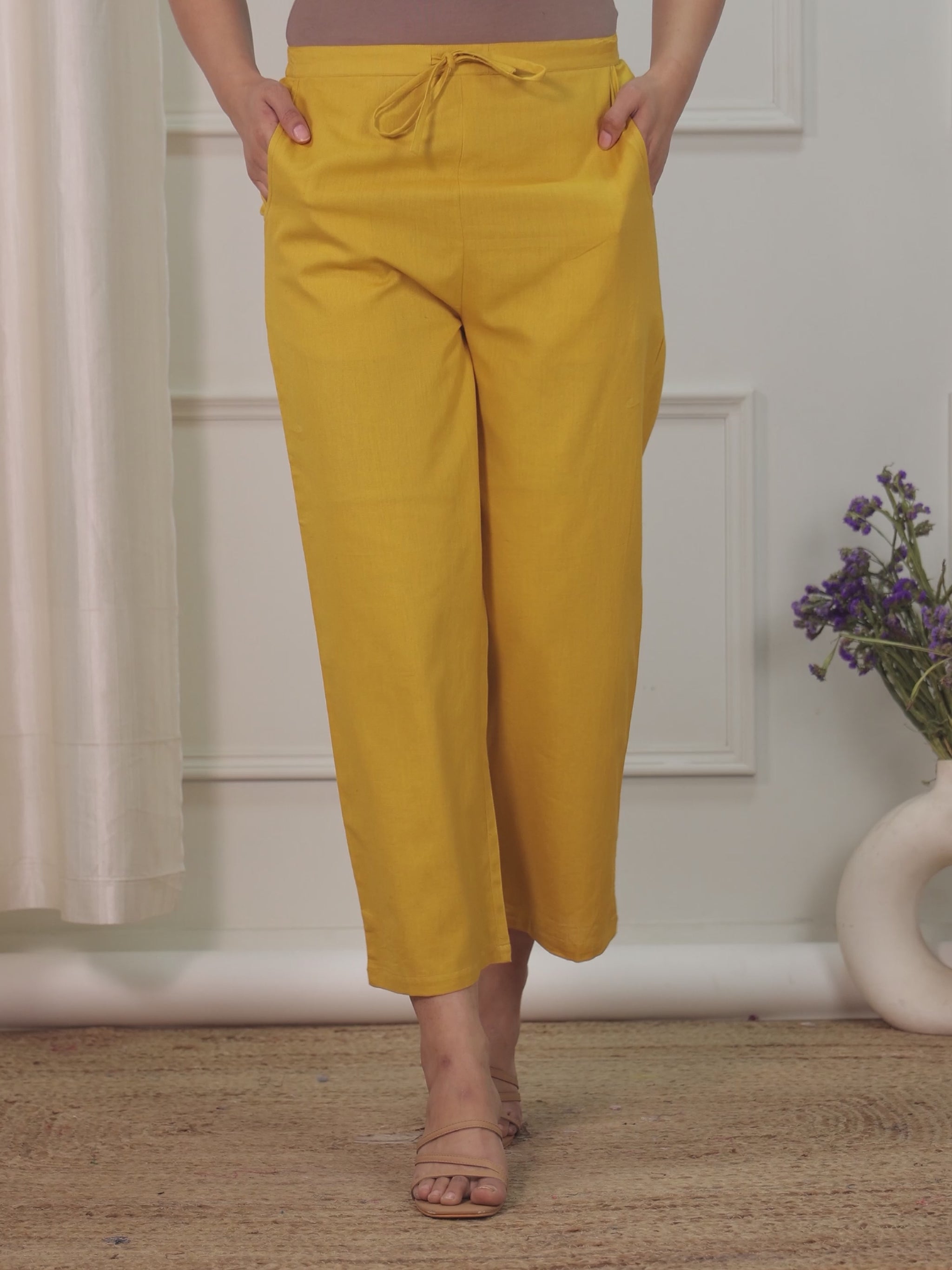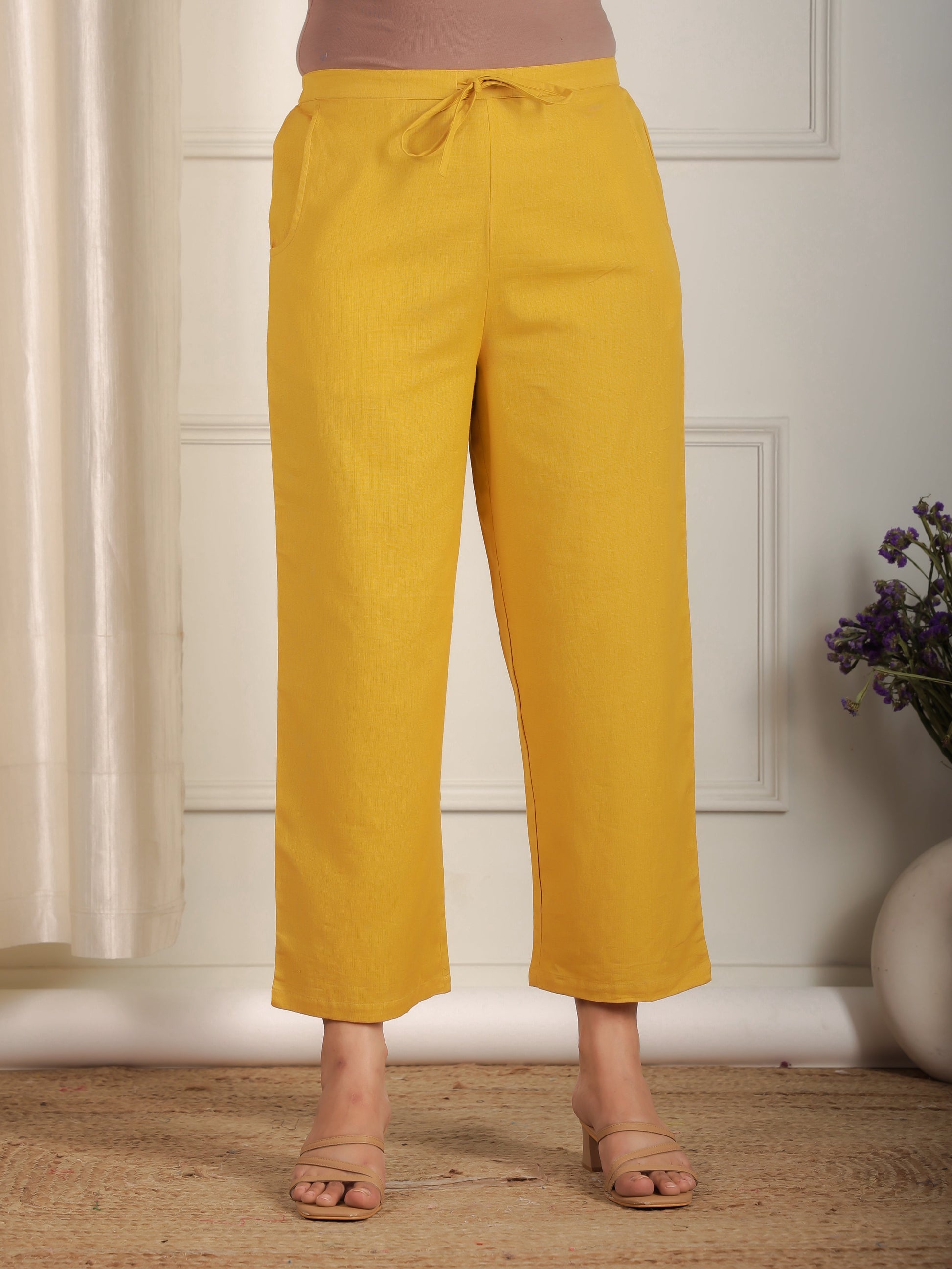 Crafted from Linen Cotton, these Yellow bottoms are designed for all-day comfort. The chic Solid work adds flair, and pockets provide convenience for carrying essentials. Great for casual days, shopping trips, or work, these bottoms pair effortlessly with your favourite tops. Their durable design and easy maintenance make them a practical staple.