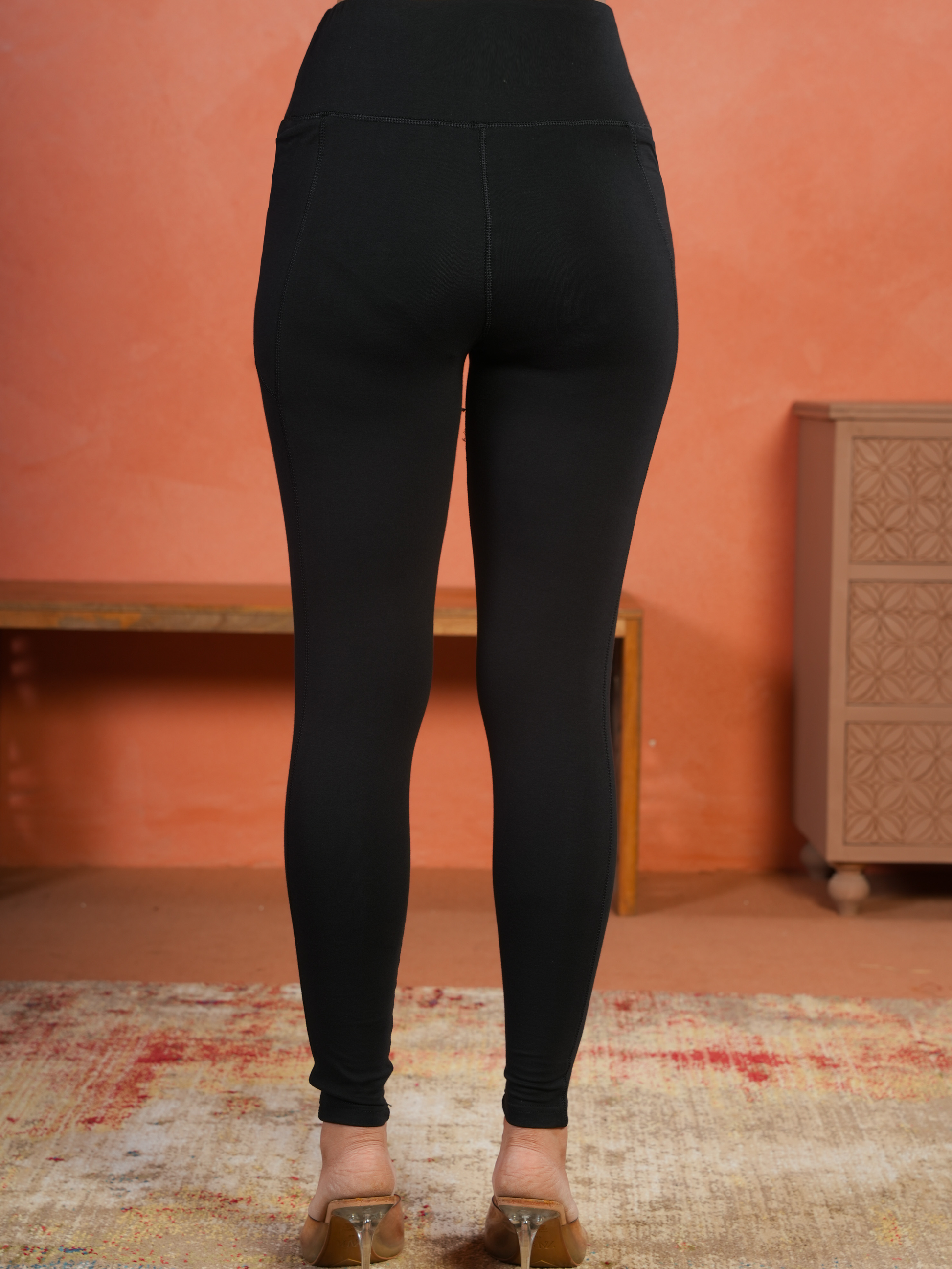 Cotton Knit Solid Black Tummy Tucker Leggings