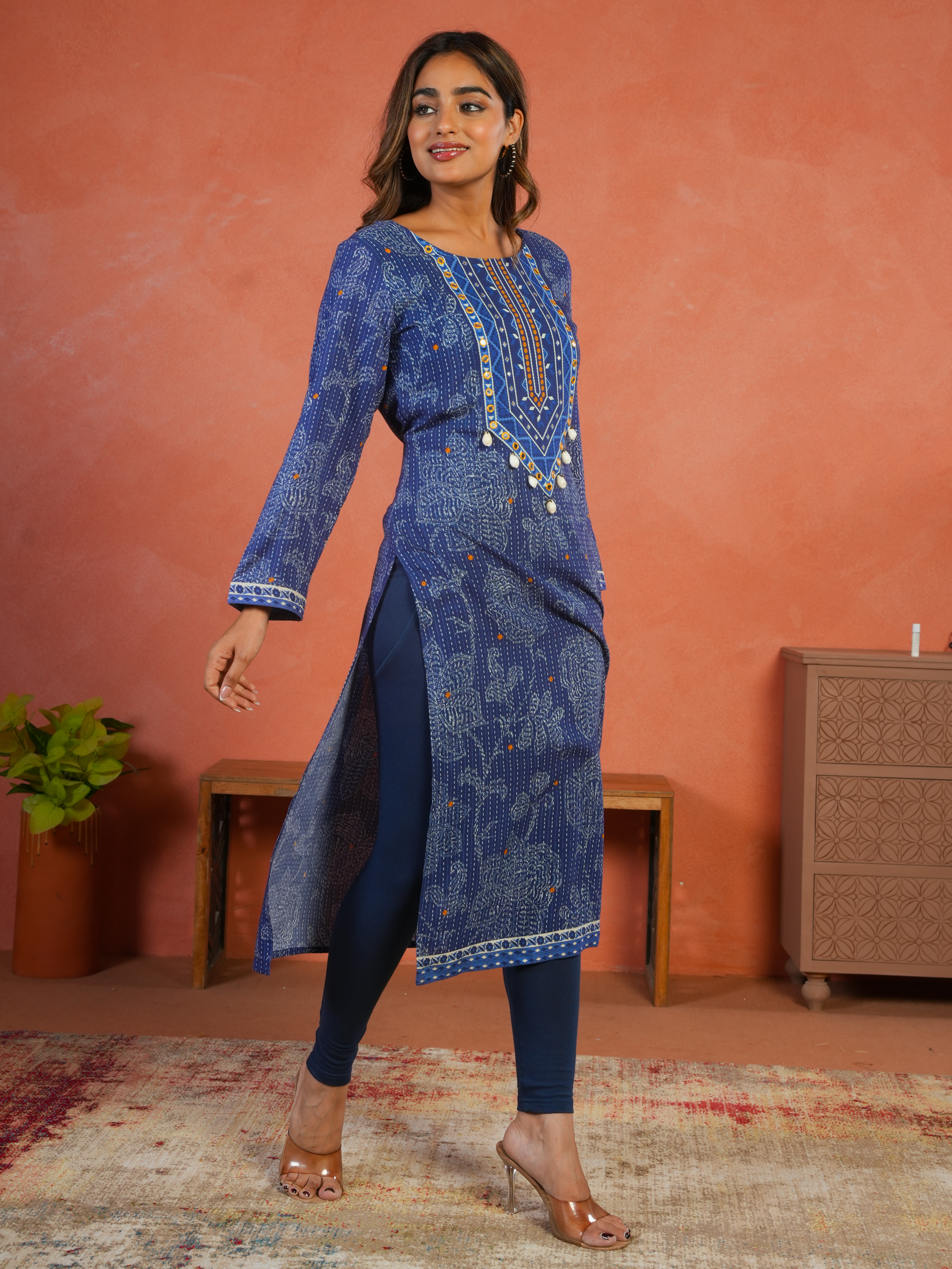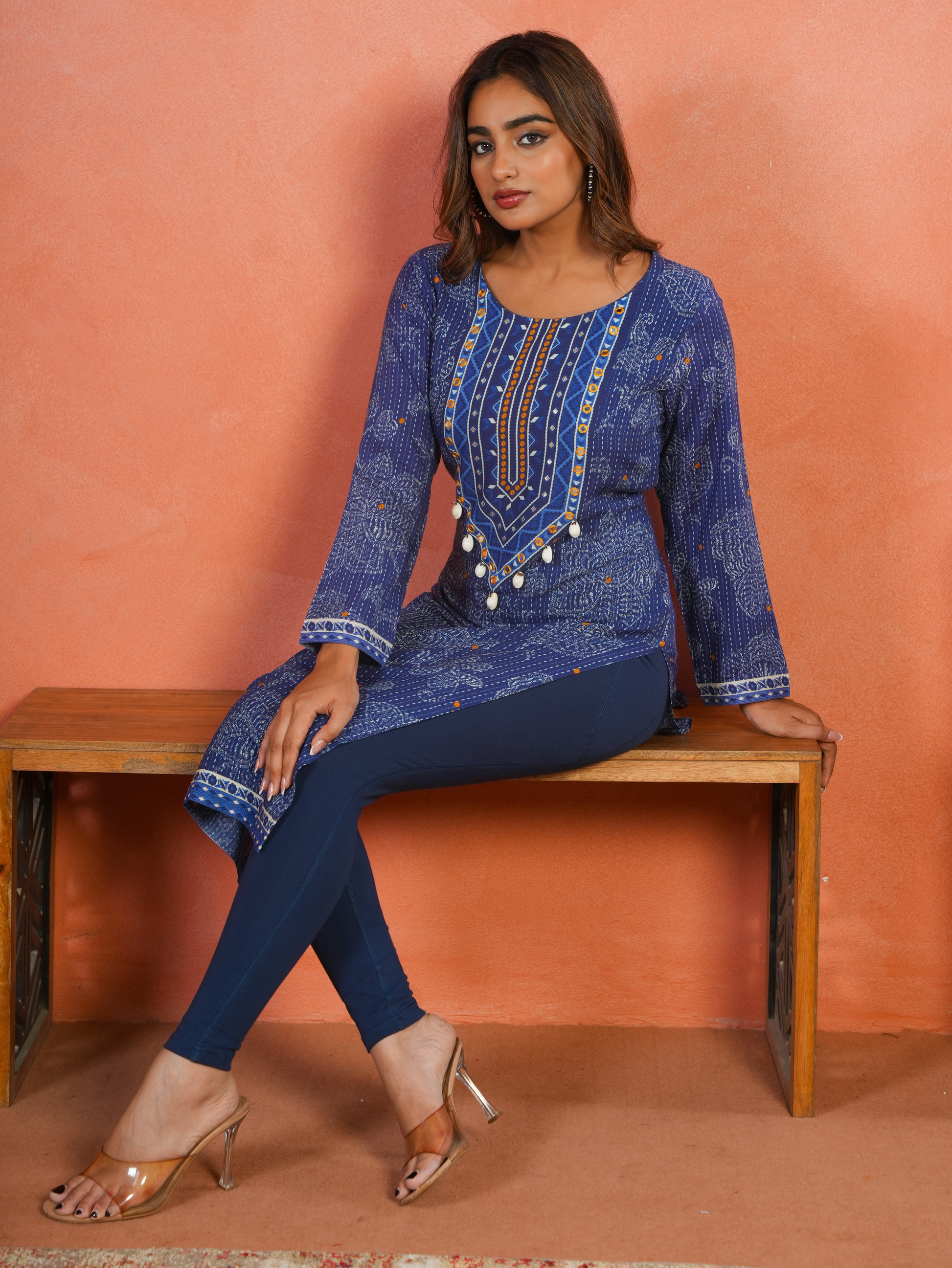 Cotton Knit Solid Blue Tummy Tucker Leggings