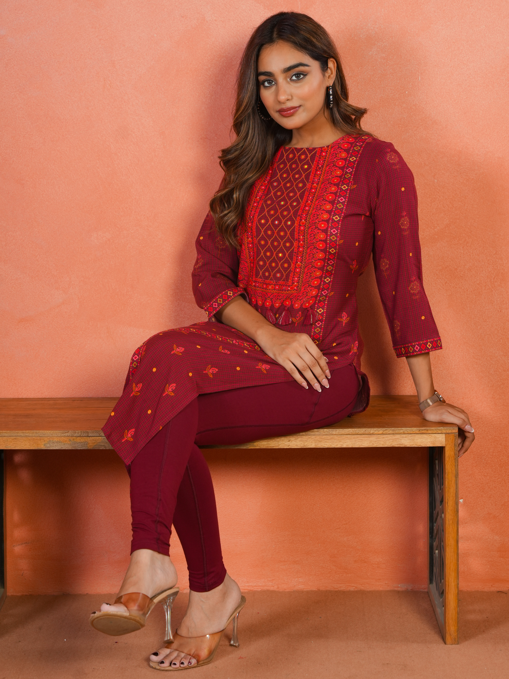 Cotton Knit Solid Maroon Tummy Tucker Leggings