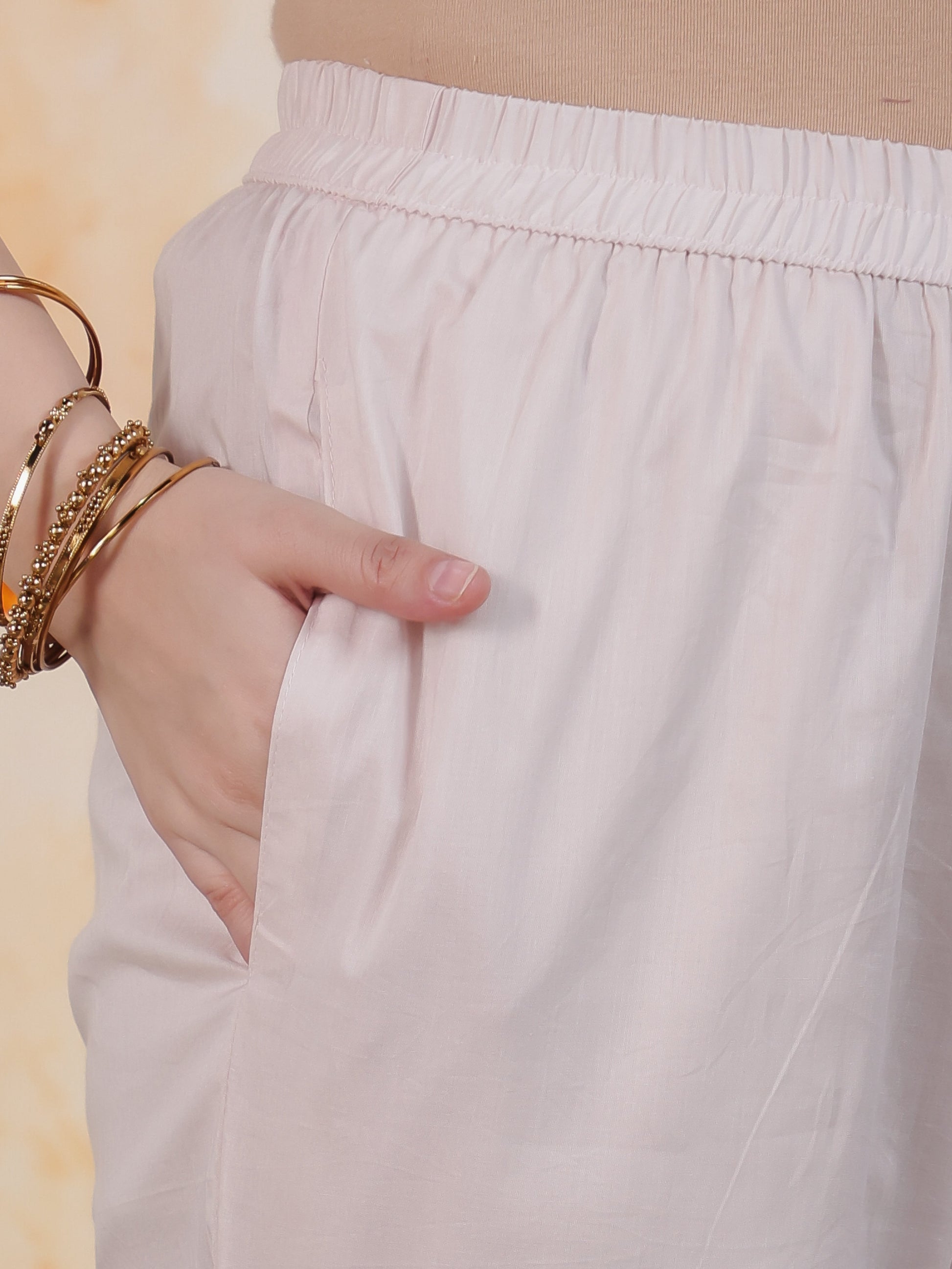 Zari Baby Pink Floral Cotton Blend Straight Kurta