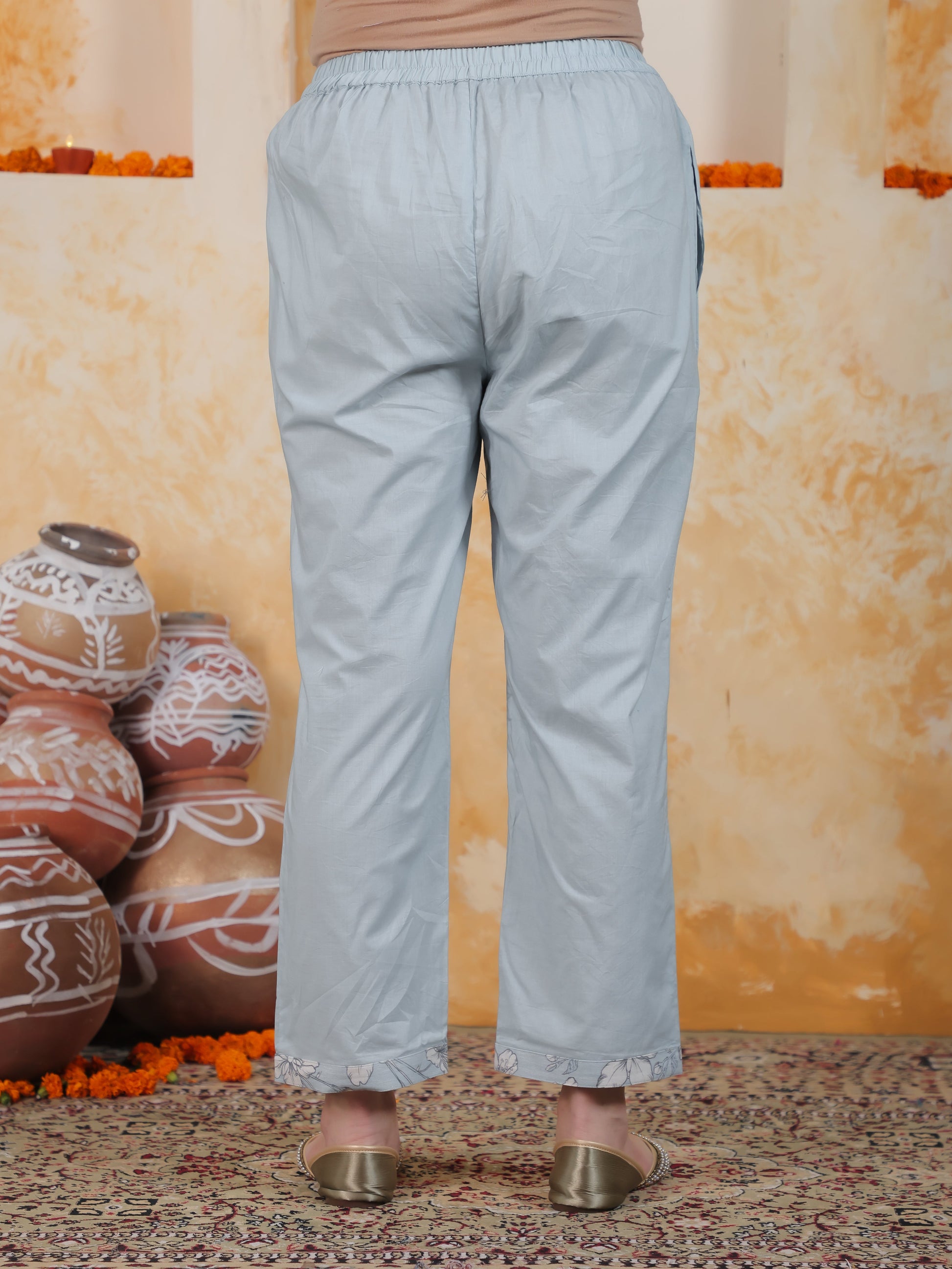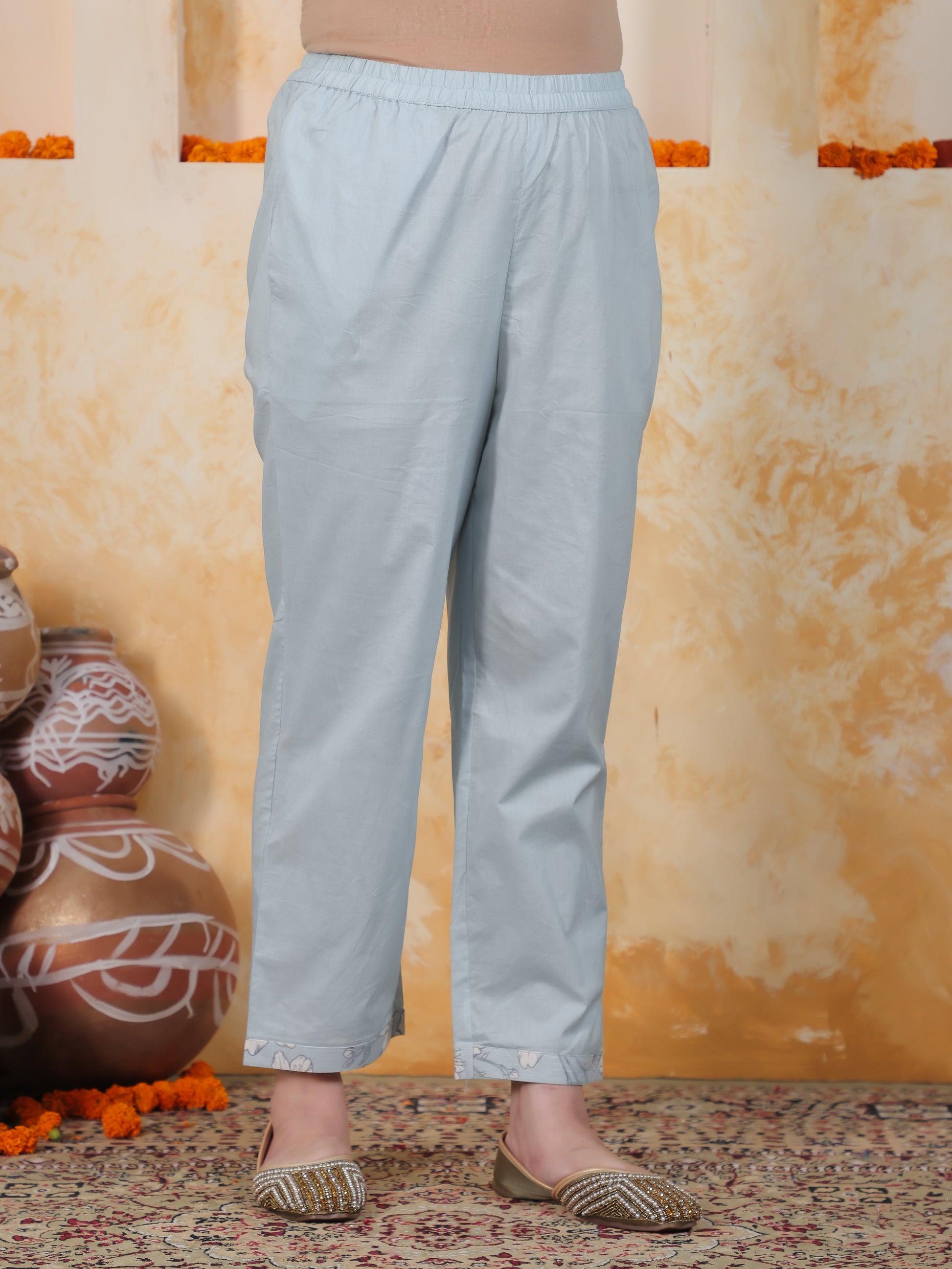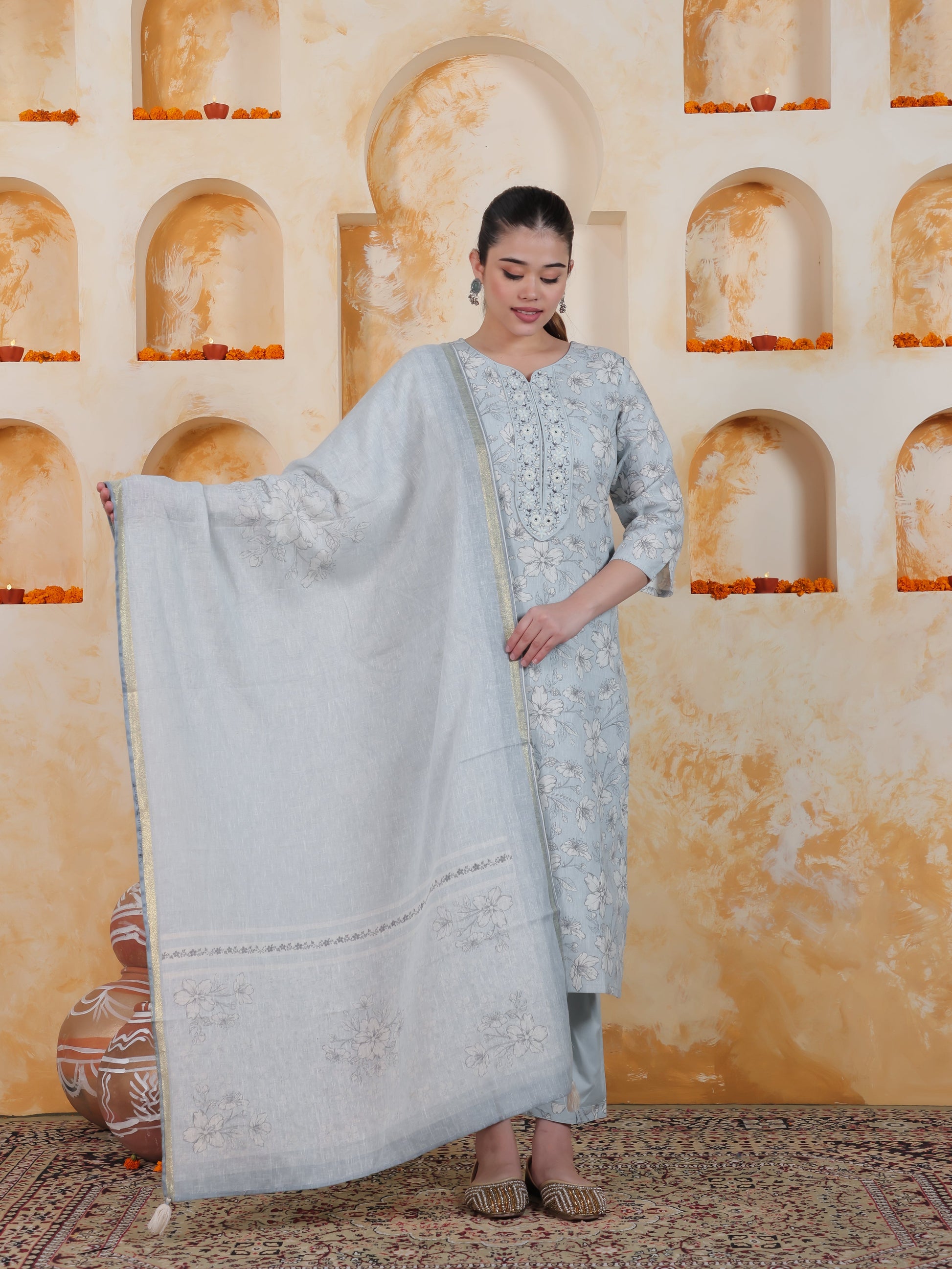 Embroidered Sky Blue Floral Chanderi Straight Kurta