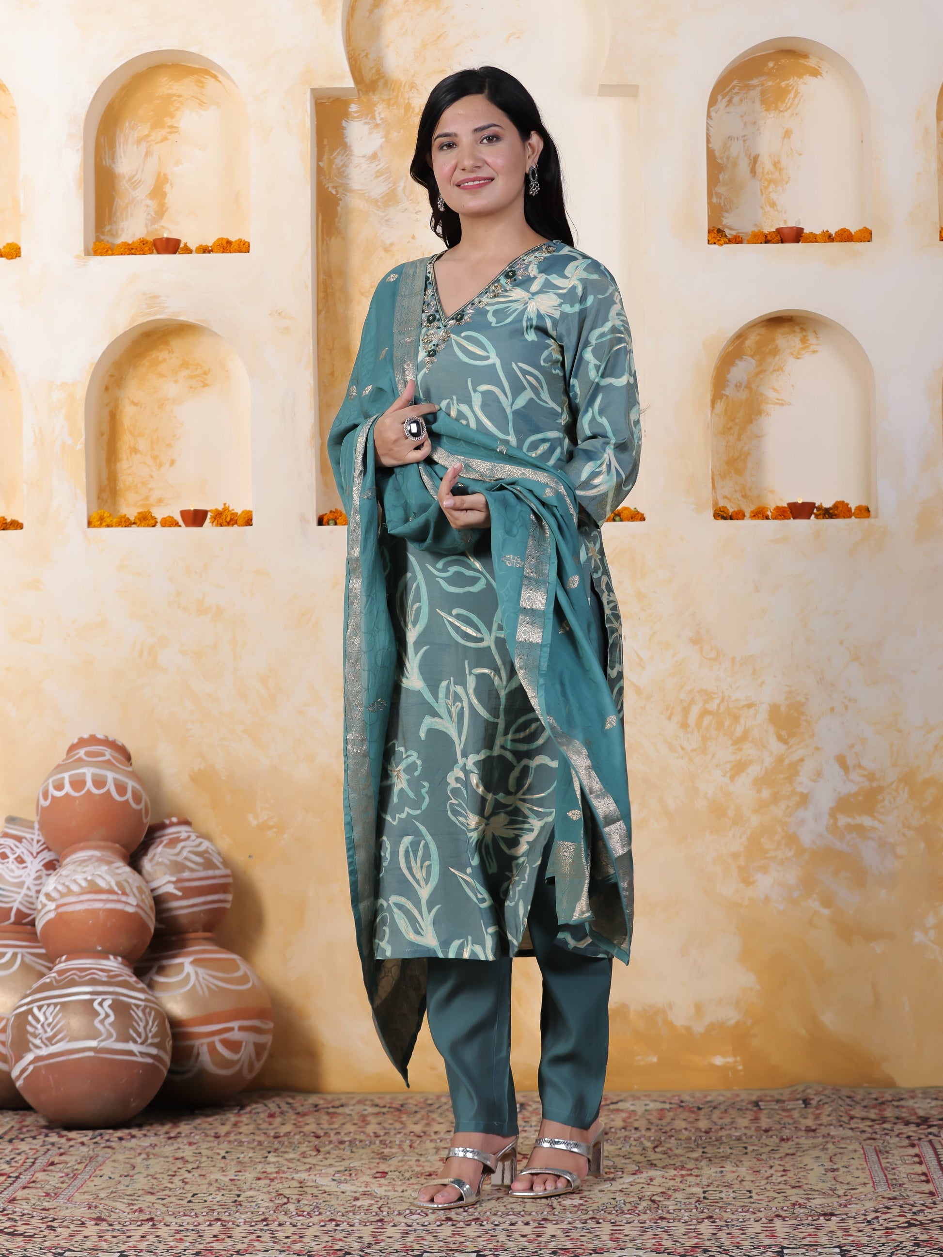 Zari Sea Green Viscose Jacquard Straight Kurta
