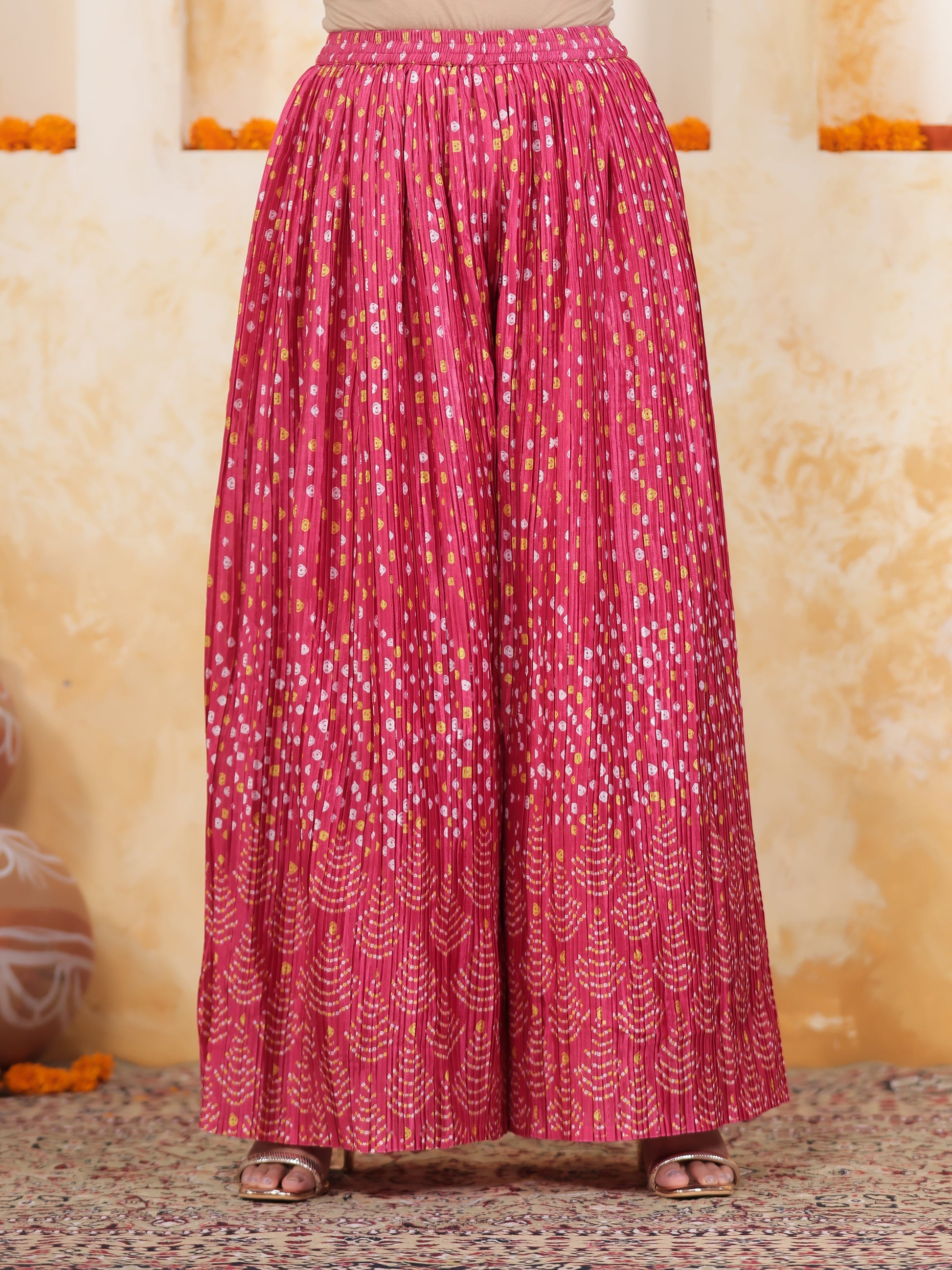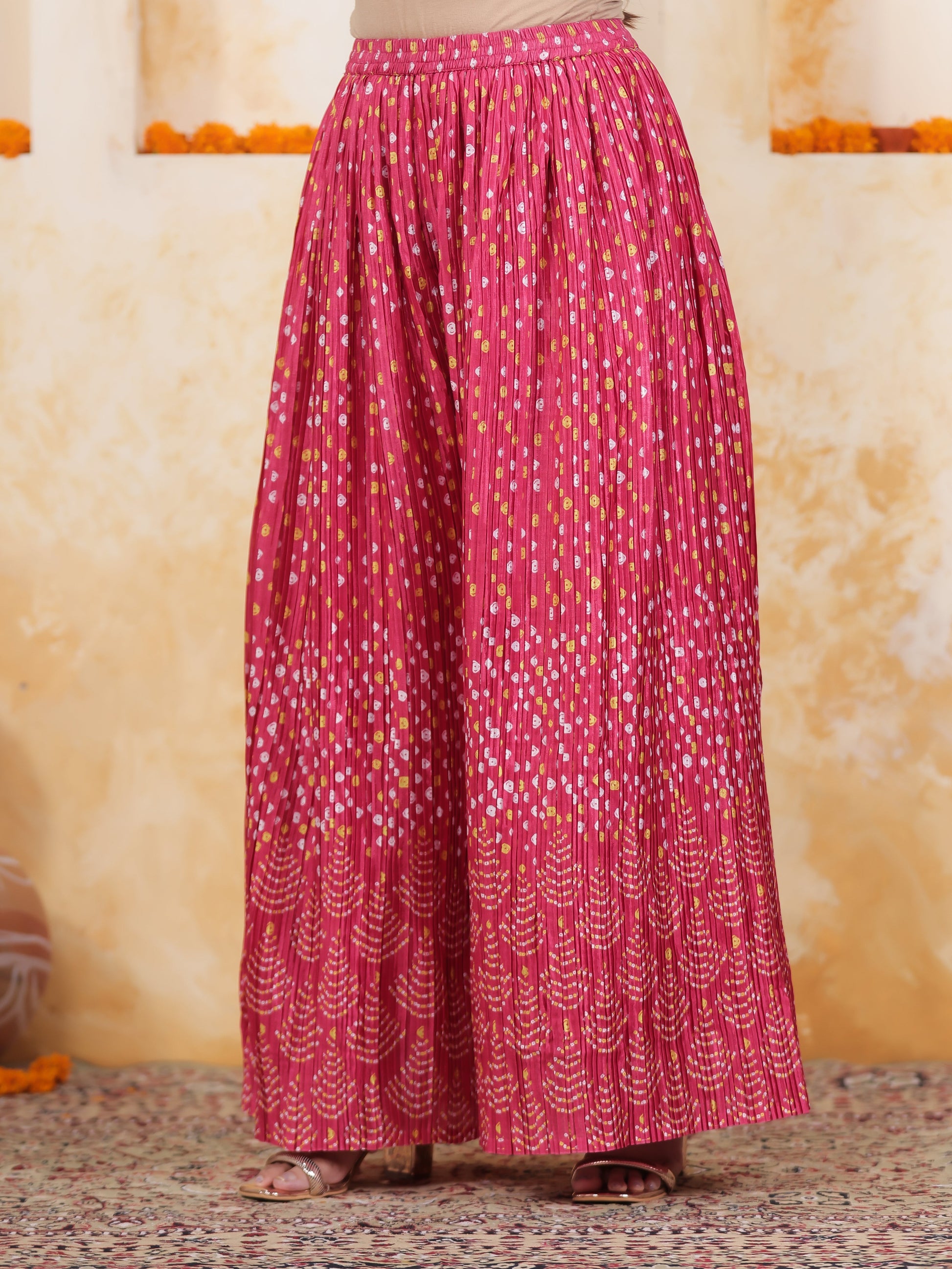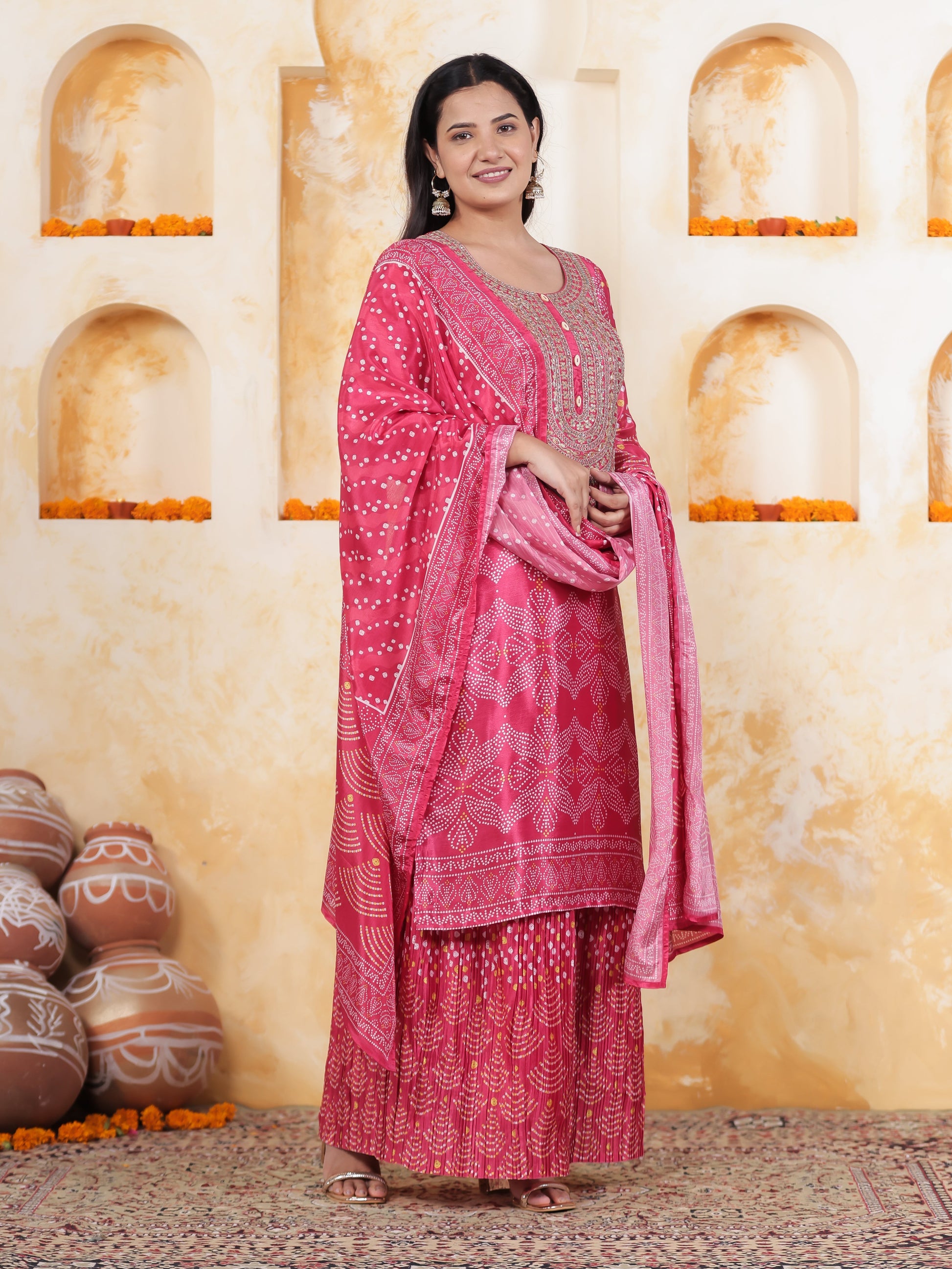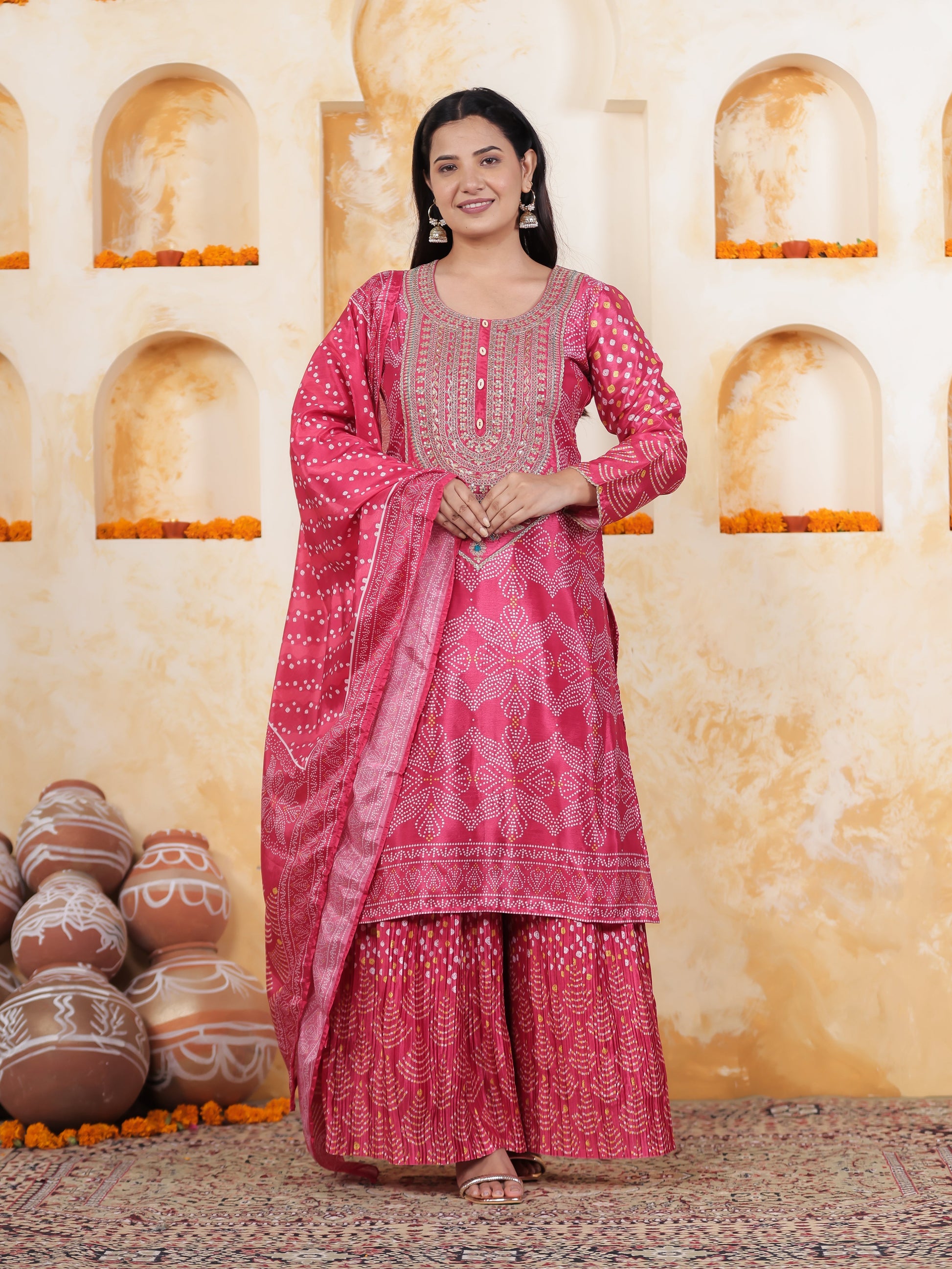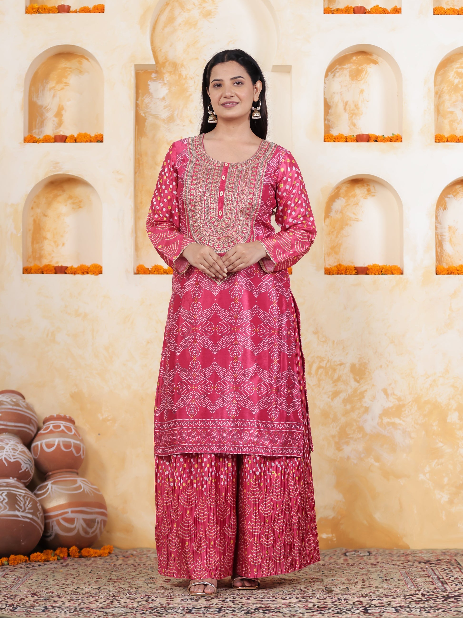 Mirror Embroidery Pink Border print Chanderi Straight Kurta