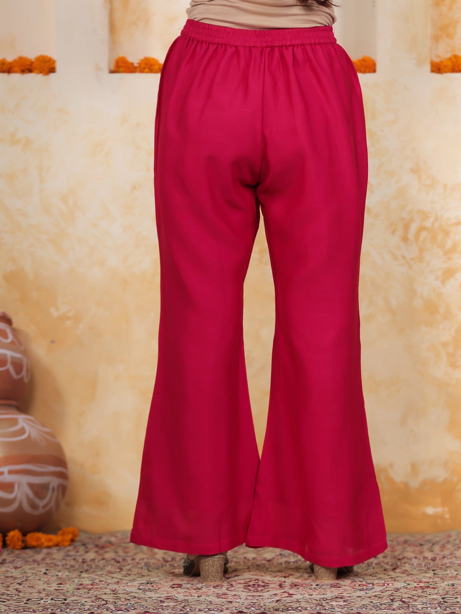 Embroidered Royal Pink Roman silk Anarkali Kurta