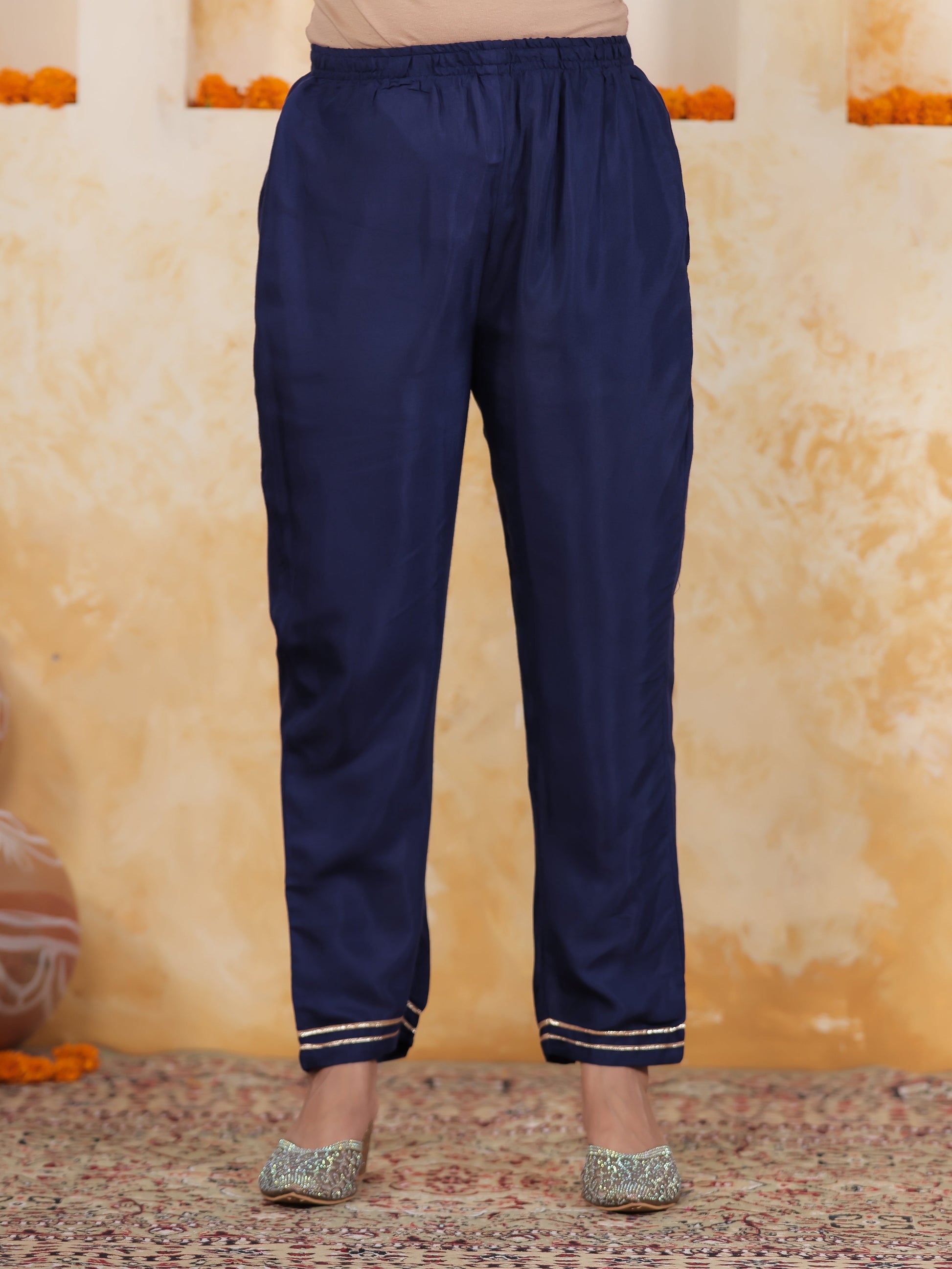 Embroidered Royal Blue Viscose Jacquard Straight Kurta